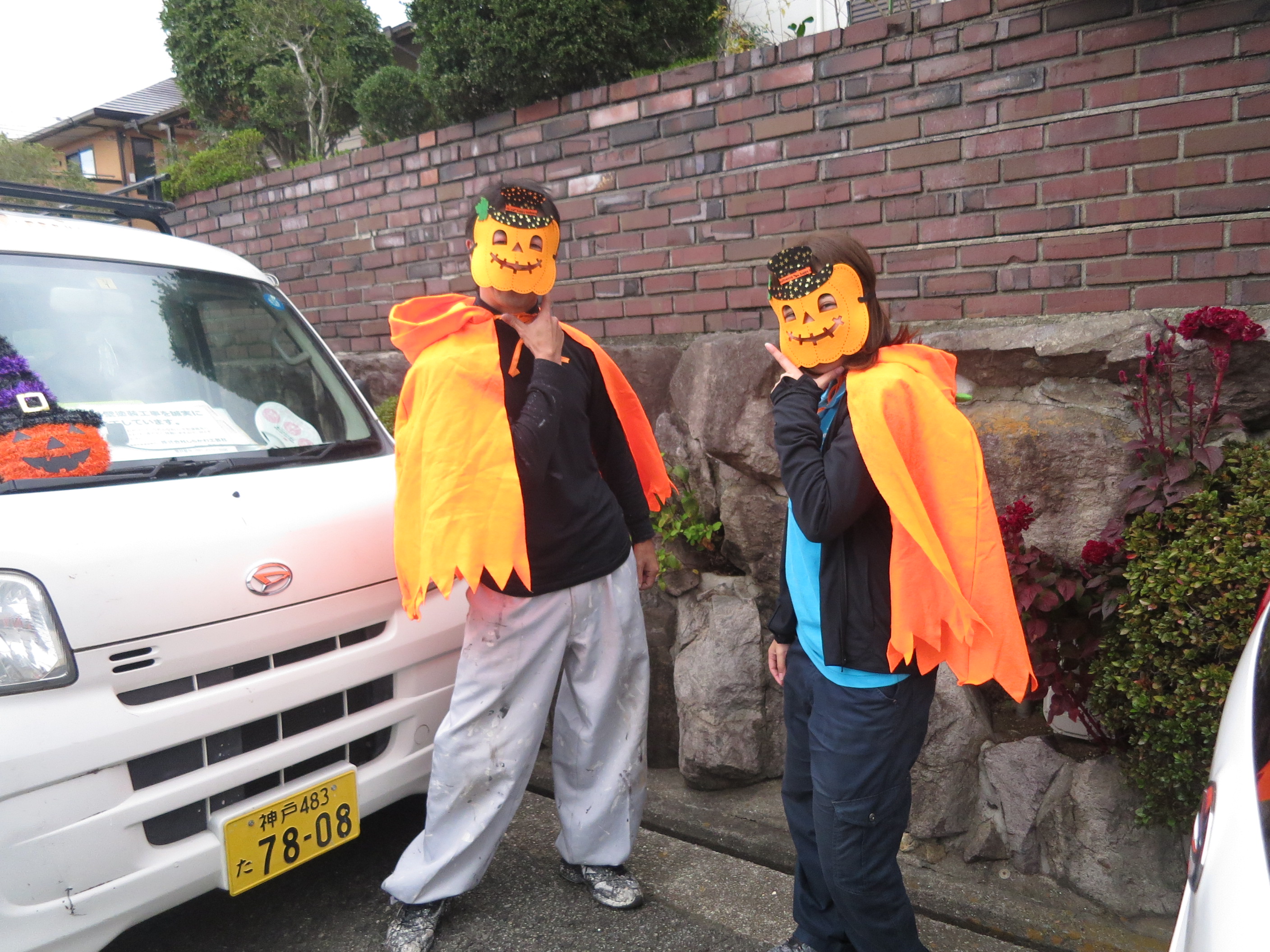 今年は藤井親方と現場サポートの福地先輩・松本の3人で仮装しました?