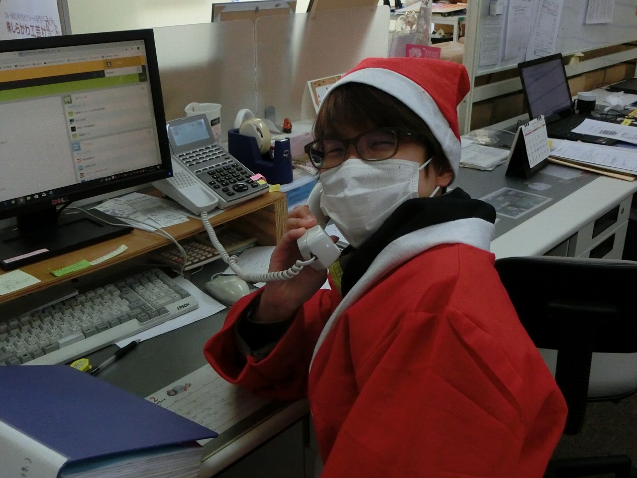 2018/12/27 上石さんサンタ! 日常地域活動&イベント こんにちは。 12月25日はクリスマス!! 今回は事務所にサンタさんが来てくれました♪ しらかわ工芸社のアイドル上石さん! サンタ姿で電話対応してくれました! 皆さんのところにもサンタさんが来てくれましたか? 今年もあと数日ですが、?最後まで気を抜かず 一生懸命がんばりますので、よろしくお願いします!