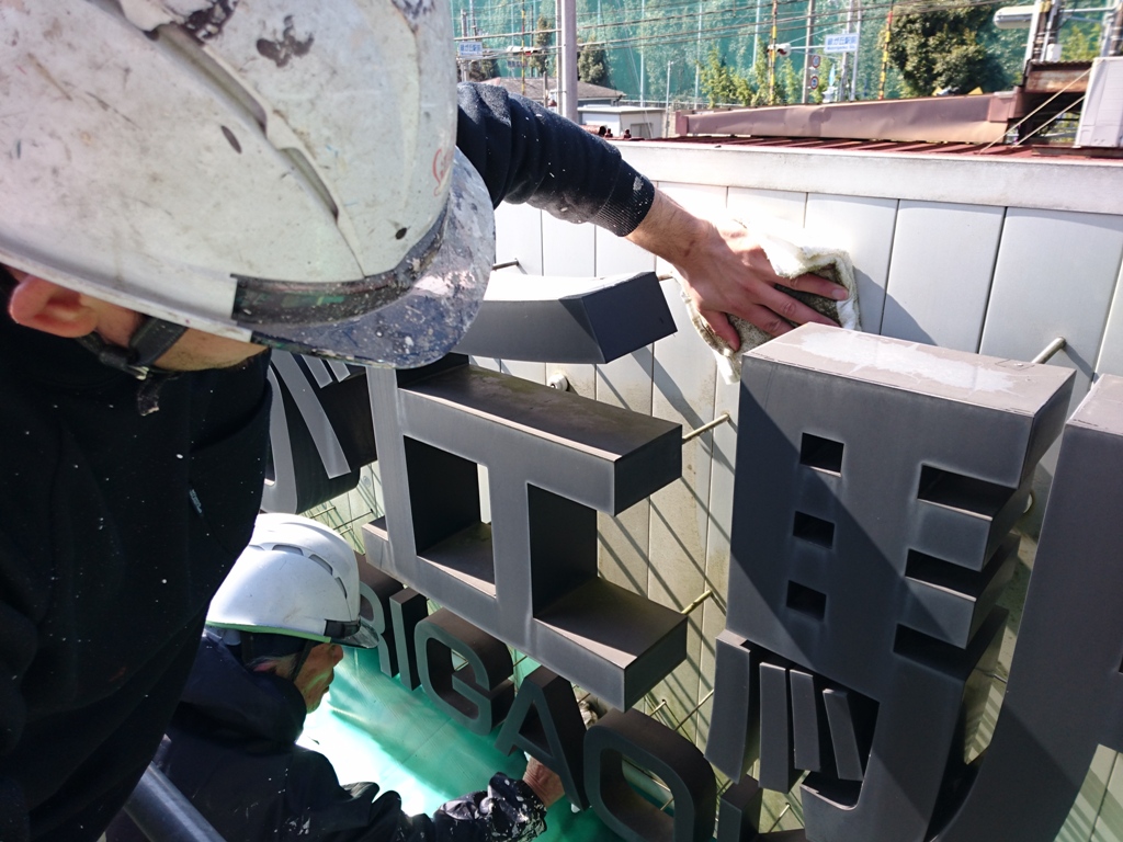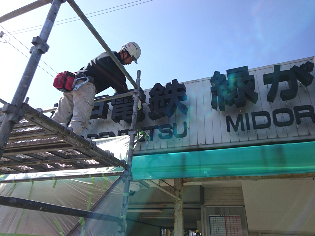 今回は顧客の石本様からのご提案により、神戸電鉄の御担当様との協議を重ね、三木市にある神戸電鉄緑が丘駅の駅名文字を塗装をすることになりました。