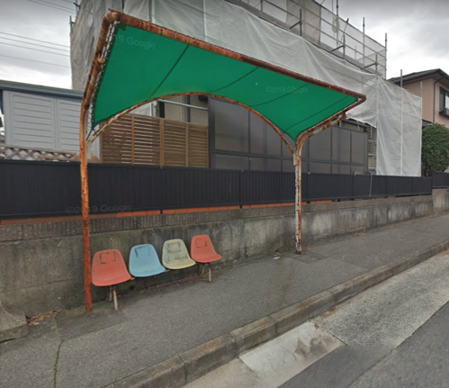 場所は、神戸市西区桜が丘中町5丁目のバス停のイスとテントの鉄骨です。