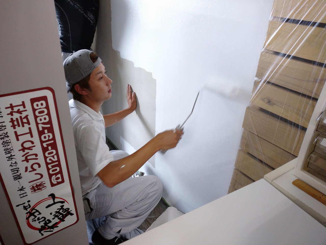 2020/07/10 雨の日は何をしてる? 塗装工事の現場を見てみよう! 雨の日は塗装は中止です。 外壁の高圧洗浄の場合は雨が降っていてもできます。 あとは、室内の塗装はできます。 今日は雨なので、しらかわ工芸社の事務所の台所とトイレの塗装をしました。 きれいに明るくなって気分も良くなりました。塗装っていい仕事やなぁ~ってあらためて思いました。