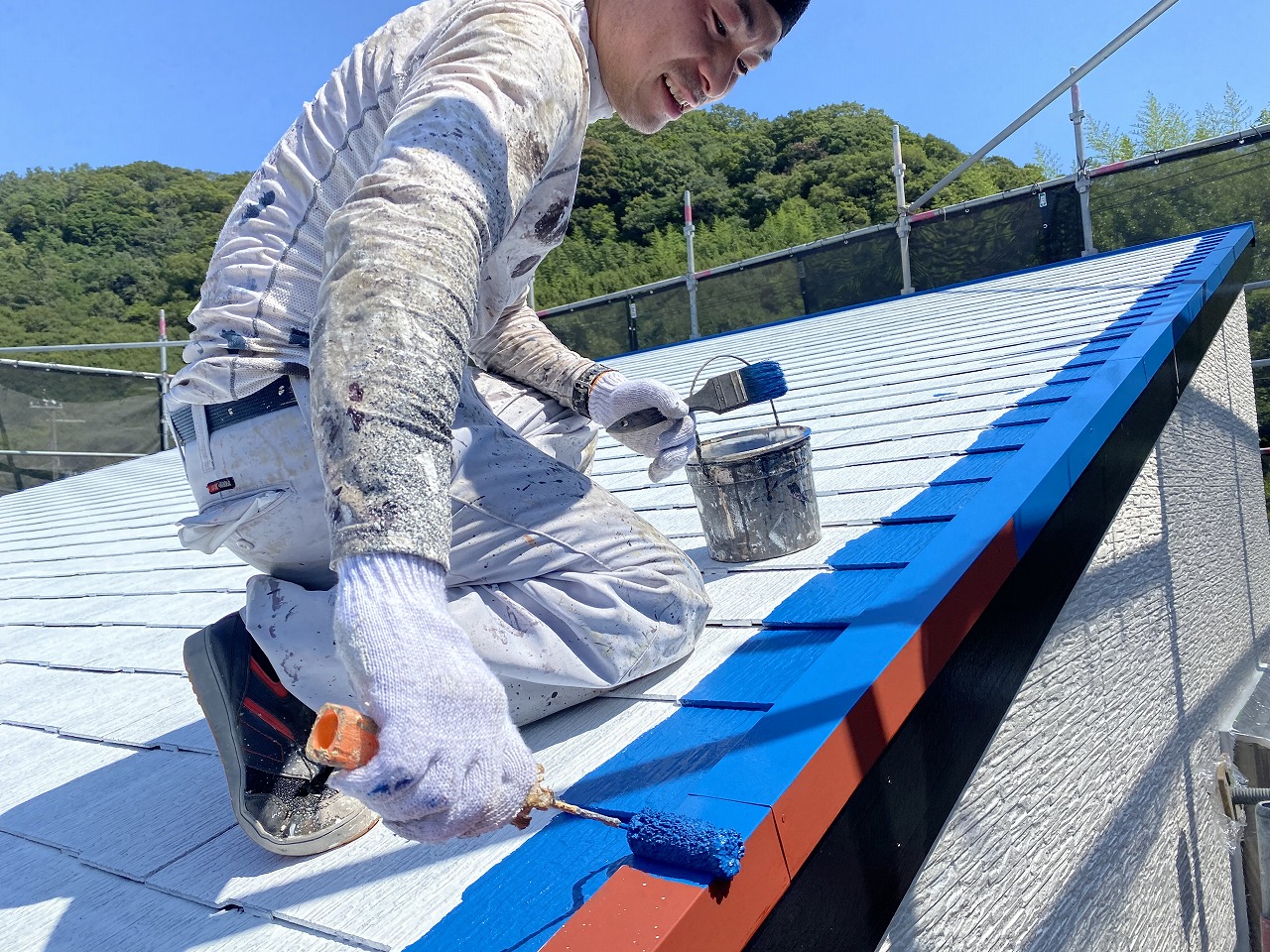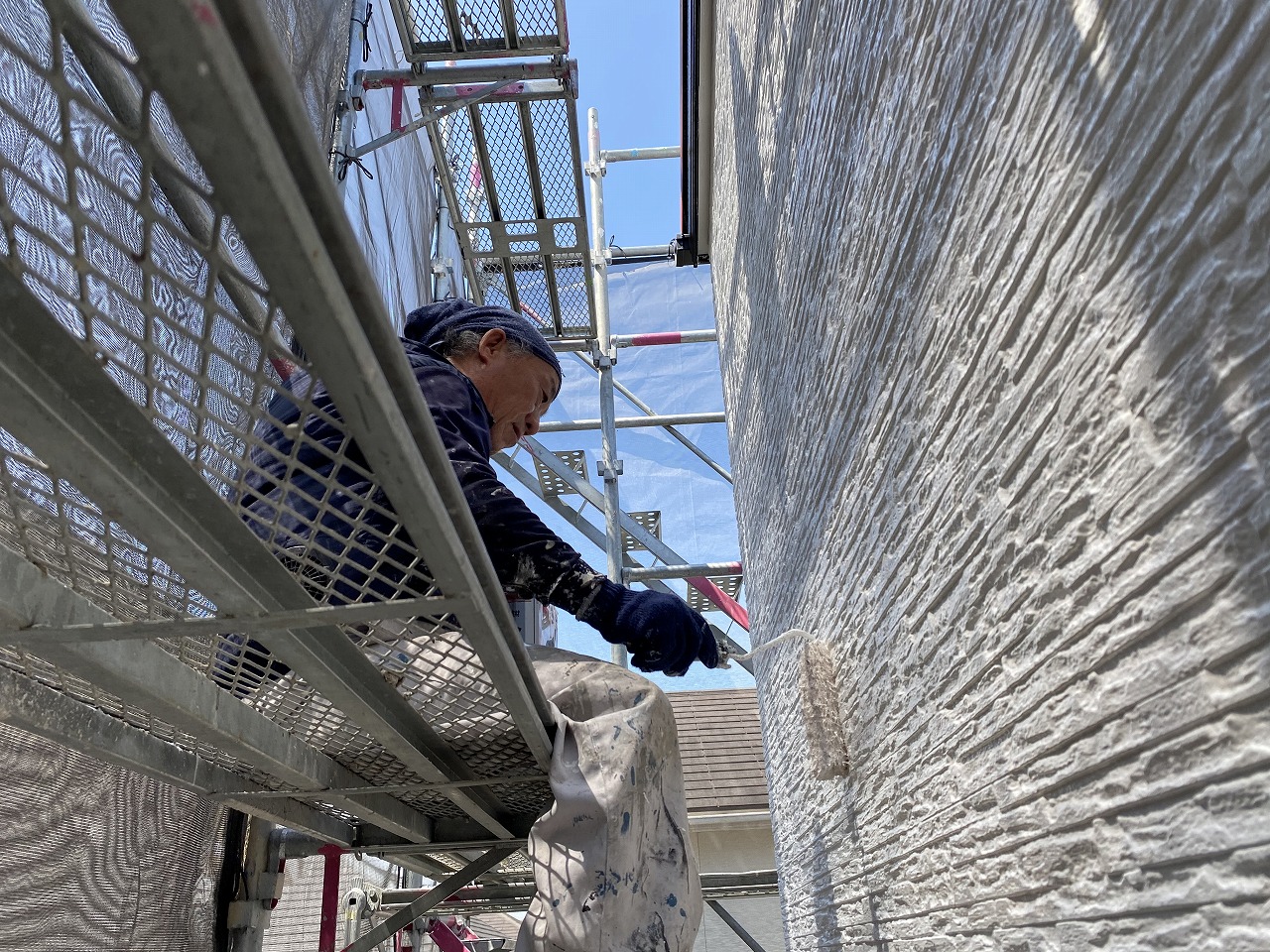 7月30日は鄭さんの誕生日!67歳でも元気に外壁を塗ってくれていました。