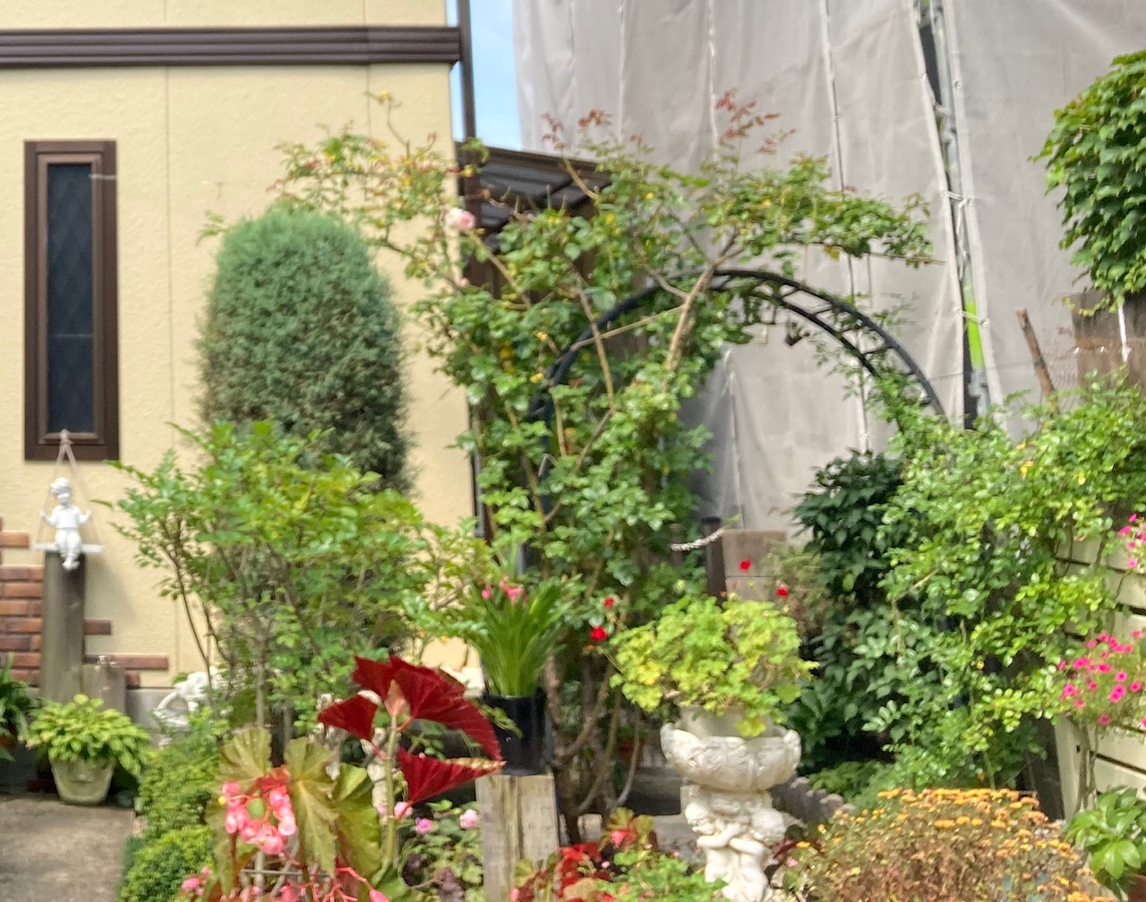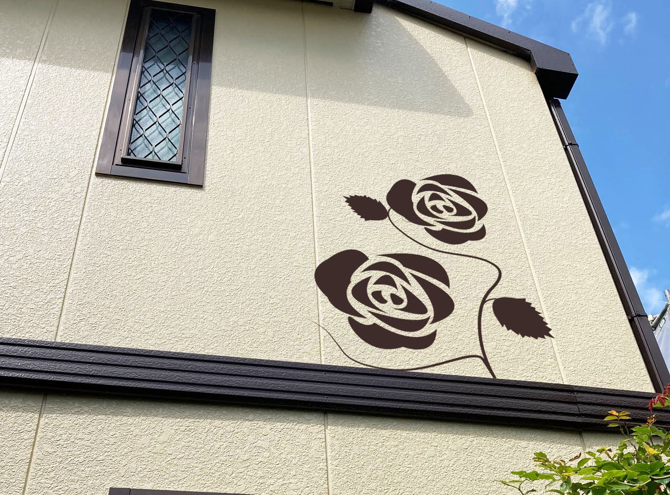 バラやアジサイなどを愛情かけて育てているK様なので、おうち正面のお庭から見える壁に