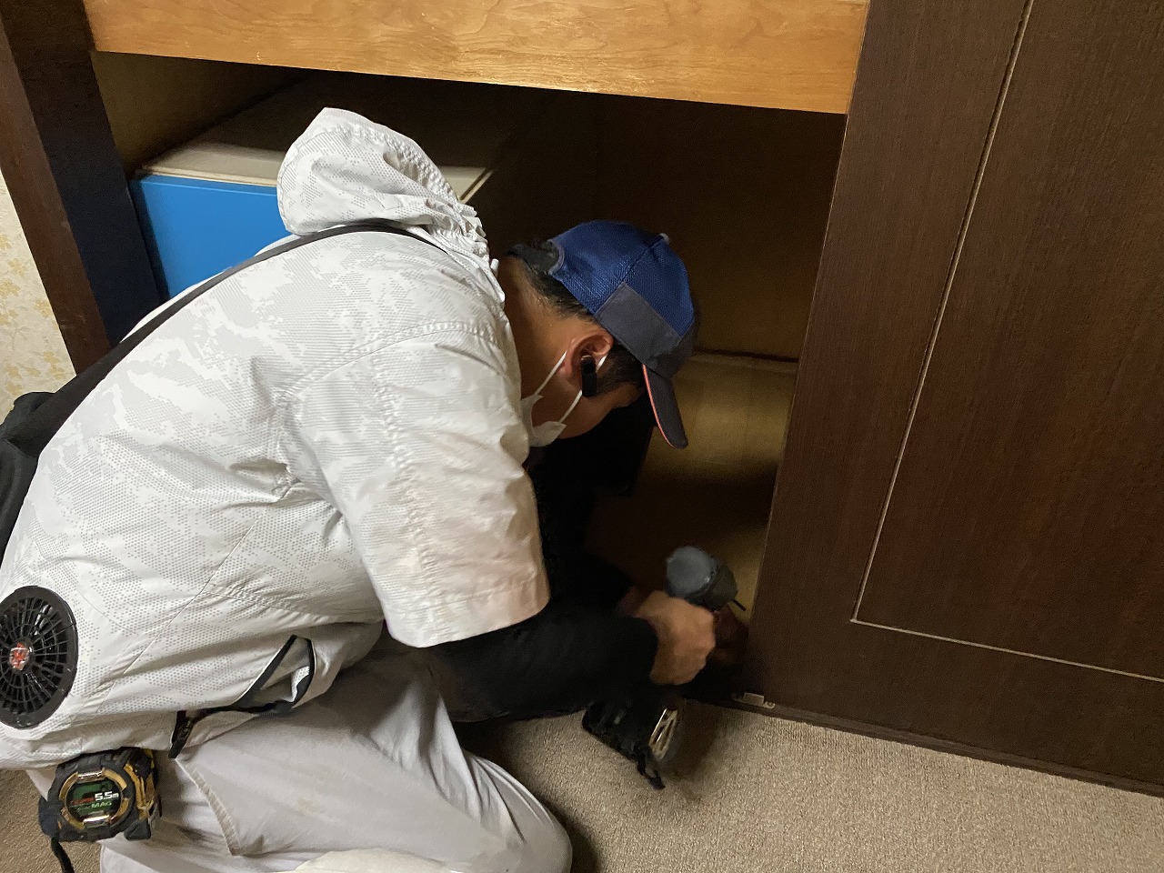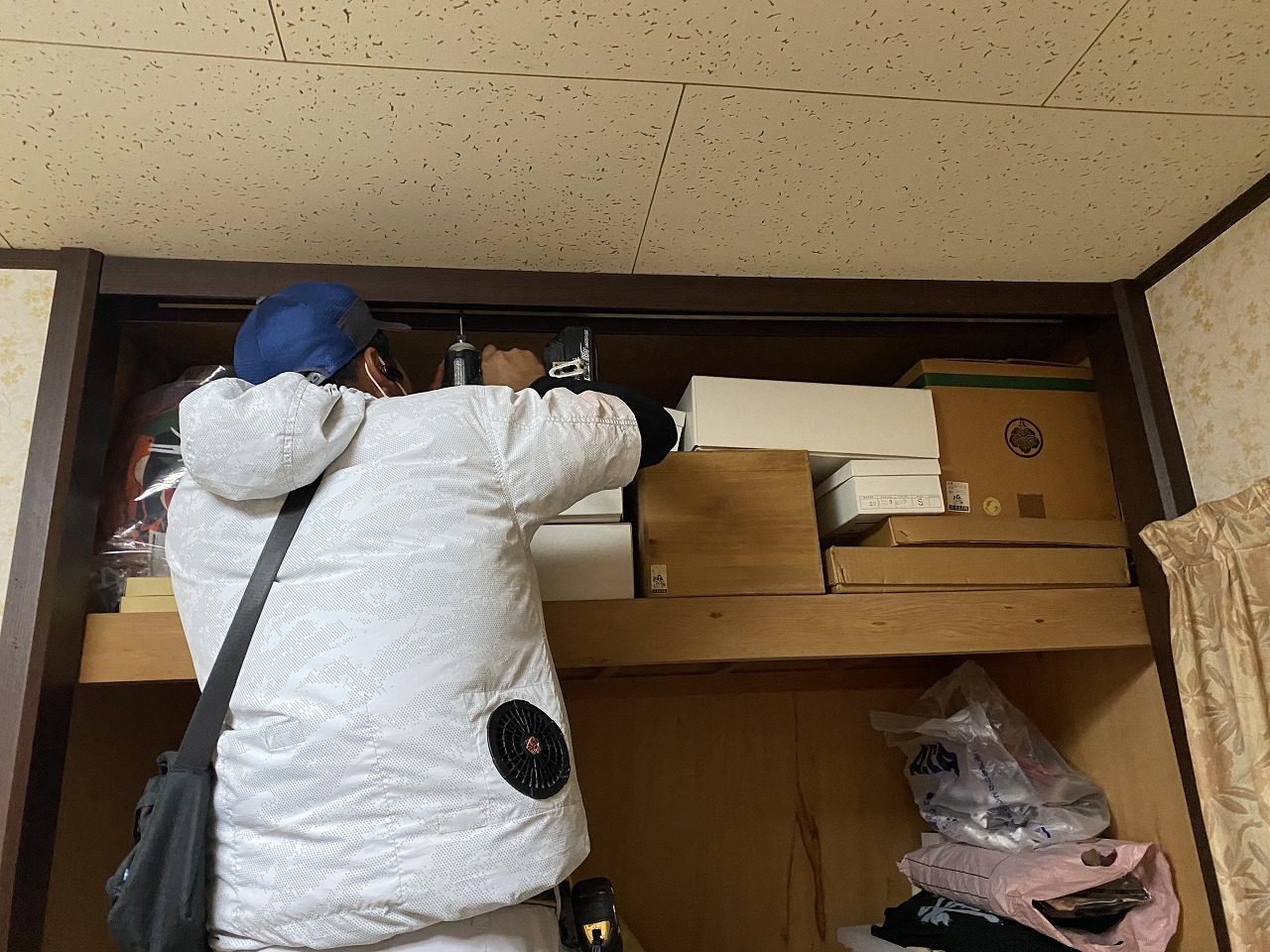 2020/08/20 クローゼットのドアを・・・! 塗装以外でもこんなことしています! こんにちは!しらかわ工芸社の桃井です。 お盆休みが終わり8月17日から通常営業に!職人さんは暑い中、作業してくれています(>_<) 今日は光孝さんと一緒に2階にあるクロゼットのドアを撤去しに行きました! こんな感じでドアを撤去することが出来ました! ドア撤去後は、カーテンを付けて中を見えないようにするそうです。 知らないところでこういう仕事もしているんだなと改めて凄いなと思いました(^O^)