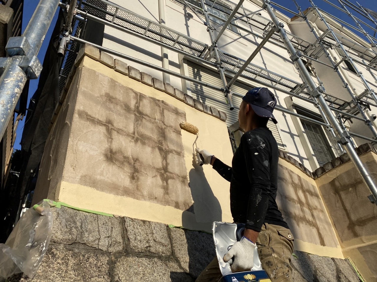 細かいところを刷毛で塗り終わった場所を大森さんが、ローラーで一気に塗っています。
