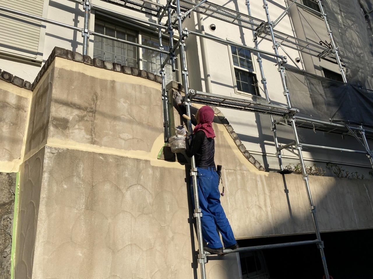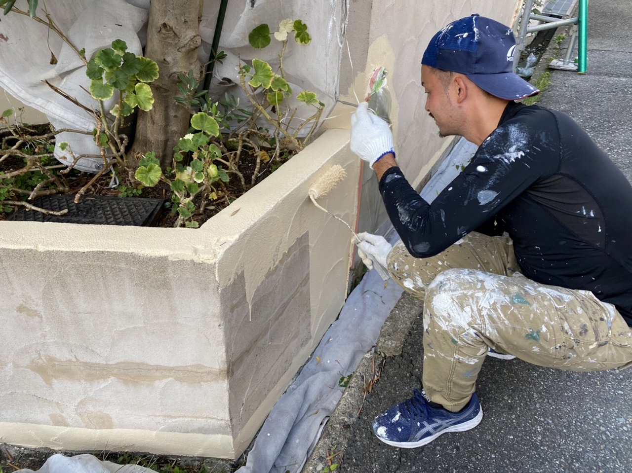別の場所では、滝さんがローラーでは塗残しが出てきてしまう、細かいところを刷毛で塗っていました。