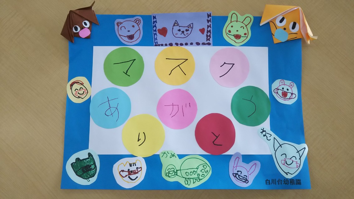 白川台幼稚園では『ありがとう色紙』をいただき感激でした。