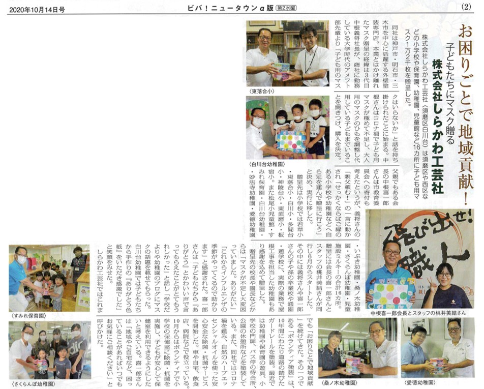 その活動が地域の情報誌【ビバニュータウン】10月14日号に掲載されました!