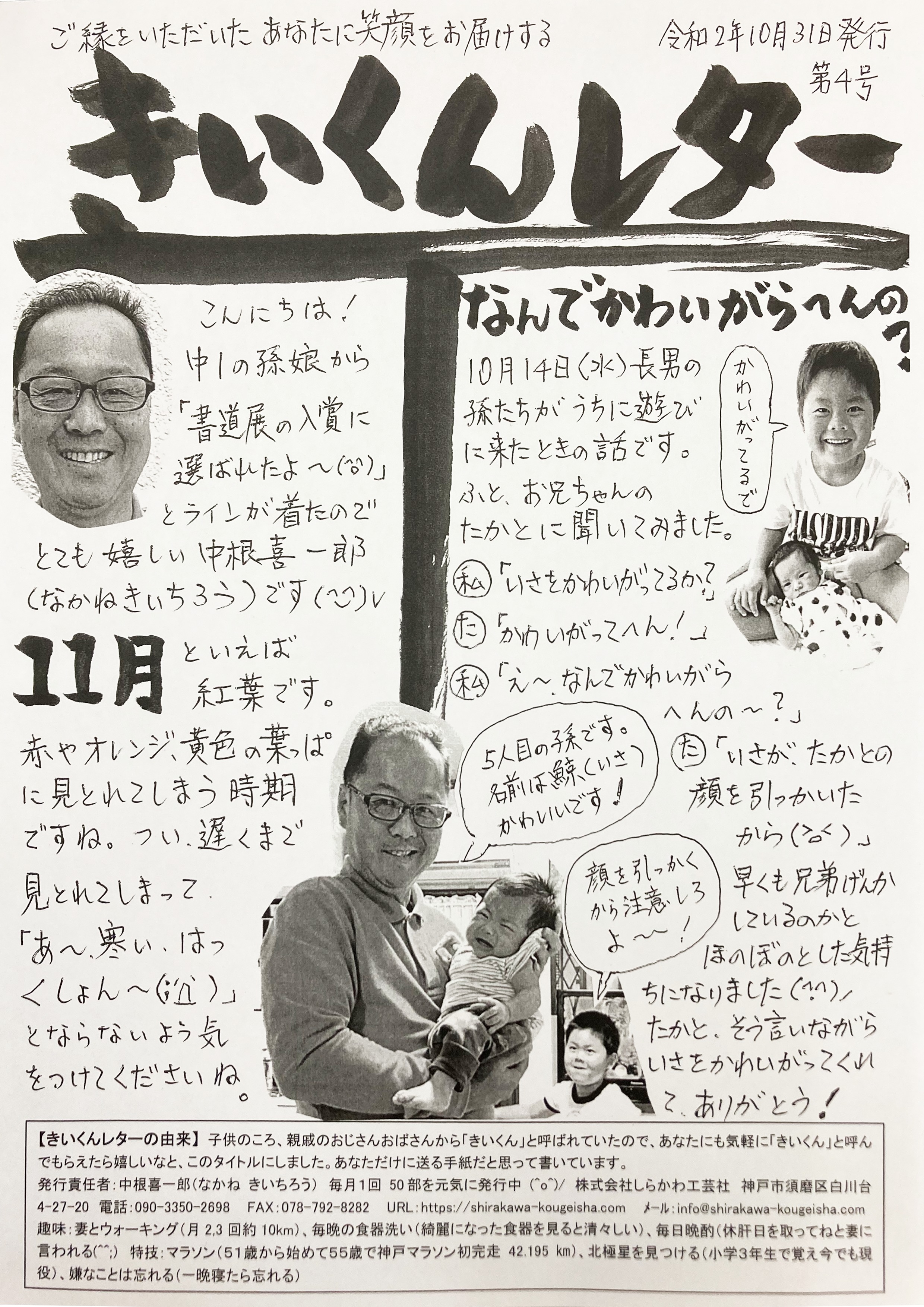 2020/11/05 11月のきいくんレター🍂 販促物 こんにちは♪最近は朝晩がすっかり冷え込みますね💦 皆さんはもうこたつを出しましたか? 今月も、会長手書きの『きいくんレター』を発行しました! 📨 会長作の 心がほっこり温まるドングリの筆絵もお届けしますね! たまには童心にかえって、紅葉を見に行った時にどんぐりを拾ったりするのも楽しいかもしれません ただ、持ち帰るときは水に浮かべて沈むドングリだけにしましょう!水に浮かぶドングリは中に虫がいる確率が高いんだそうですよ!
