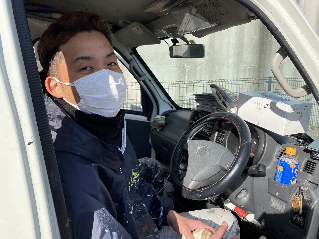 サービス旺盛な大森さん現場前でポーズ取ってくれました!
