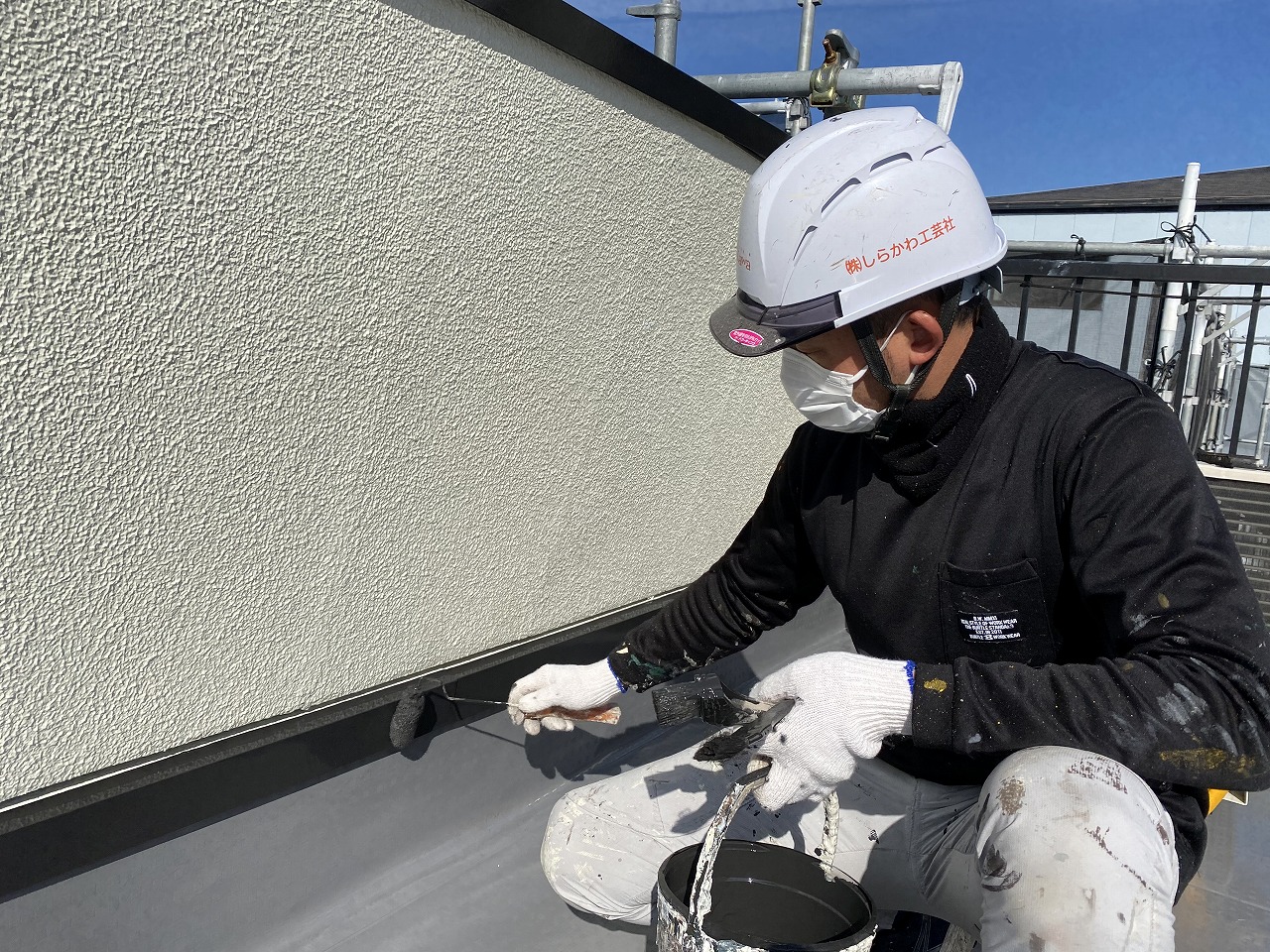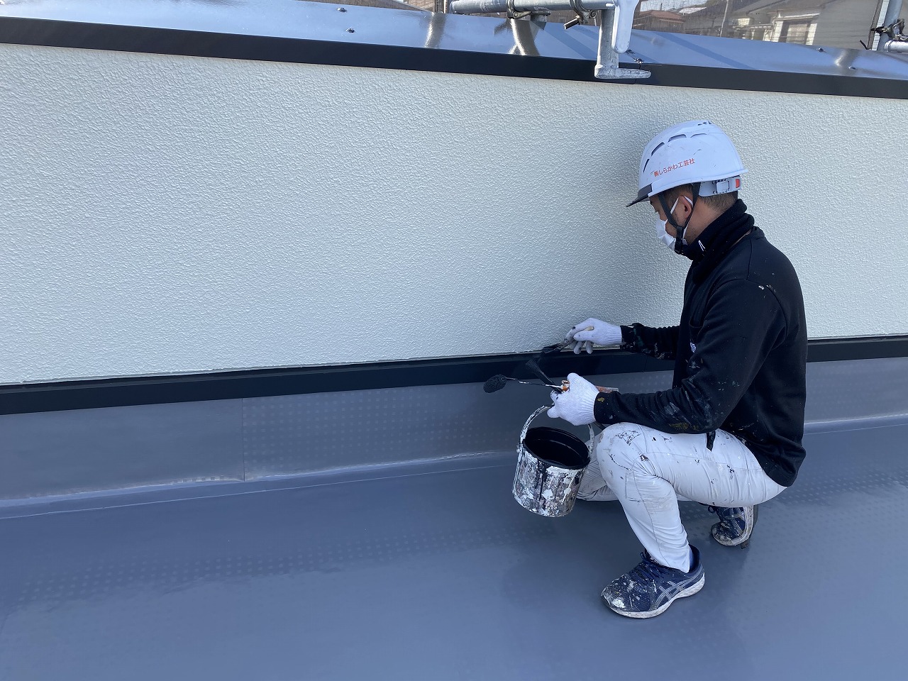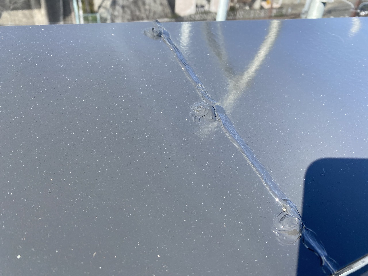 鉄板のビス部分や継ぎ目部分をしっかりコーキング!