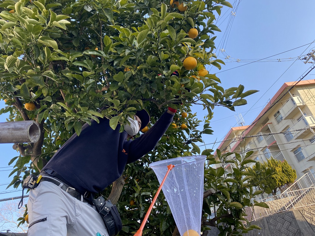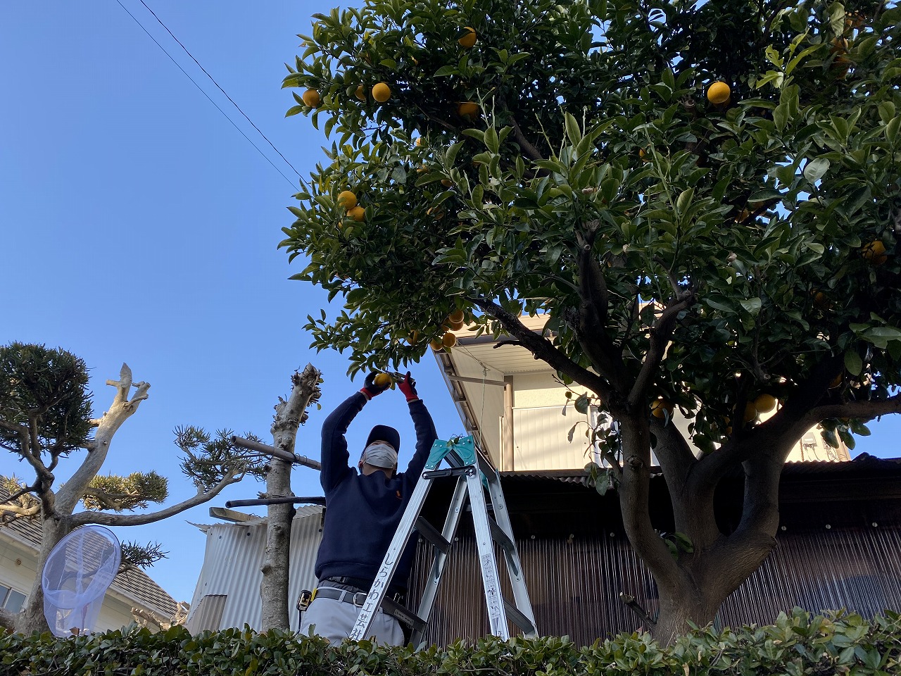 全部収穫しました!オレンジ色が無くて寂しく思う木ですが、「全部取ってくれてありがとう」とN様が喜んでくれました!