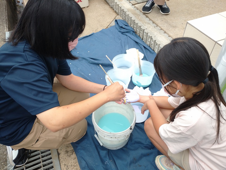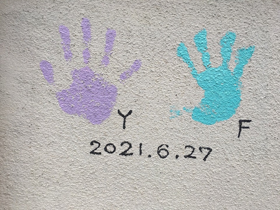 手に塗料を塗って、好きなところにペタ!