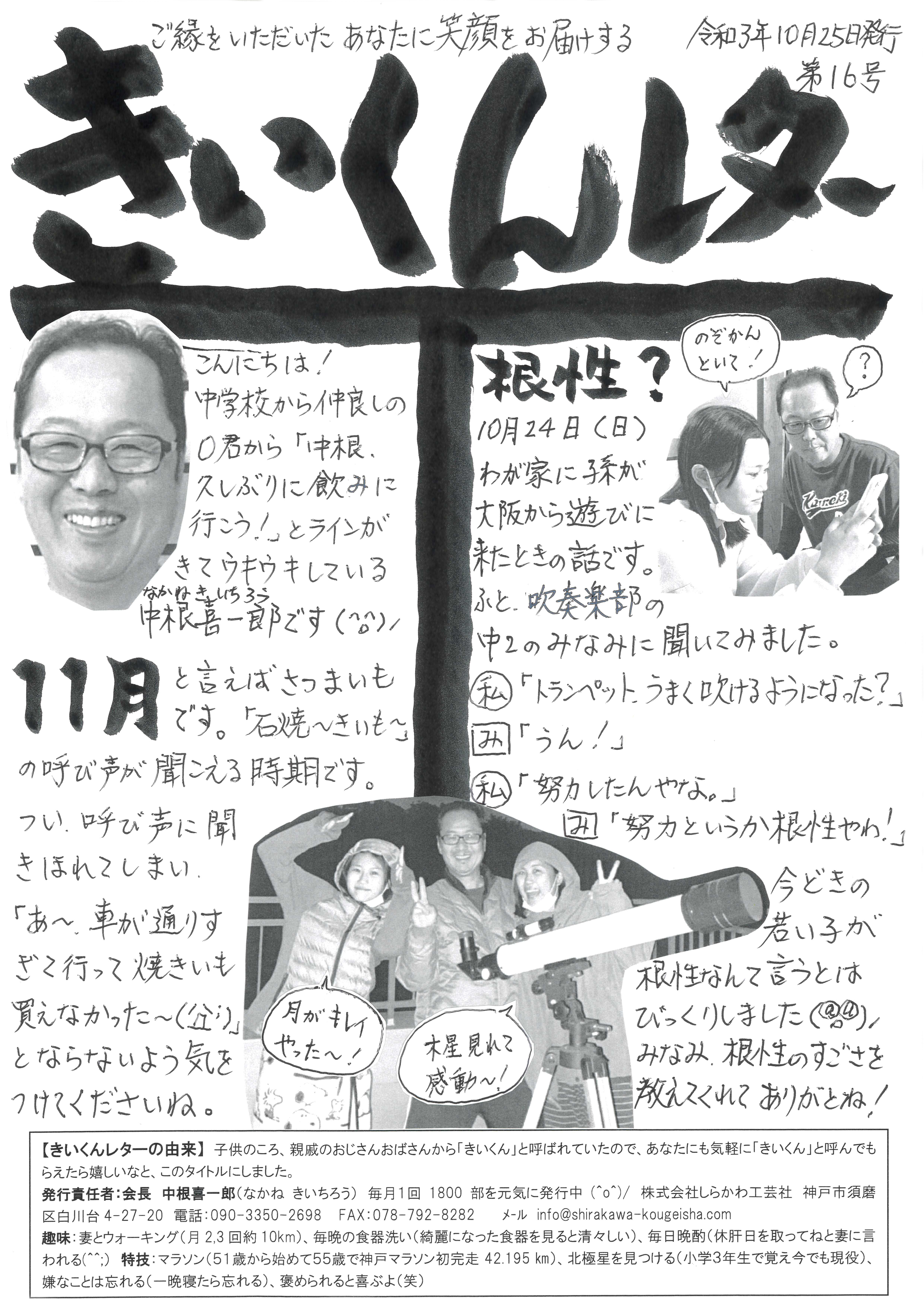 2021/11/01 10月のきいくんレター&11月のきいくんレター🍁 販促物 こんにちは!しらかわ工芸社です。 10月号のきいくんレター、11月号のきいくんレターをまとめてお届けします♪ 10月号 11月号 朝晩の冷え込みがますます厳しくなっていますが、 皆様もお体を壊さないようご自愛くださいね。