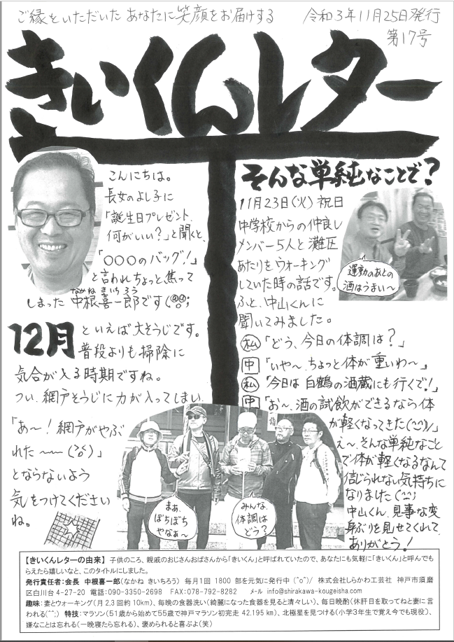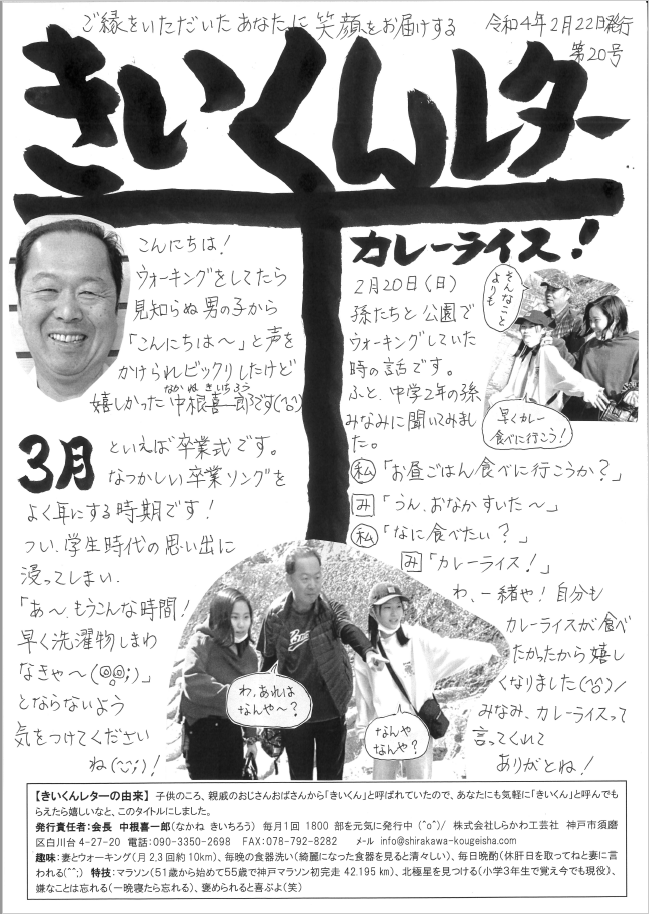会長が毎月書いているきいくんレター、今年も元気に発行しています♪