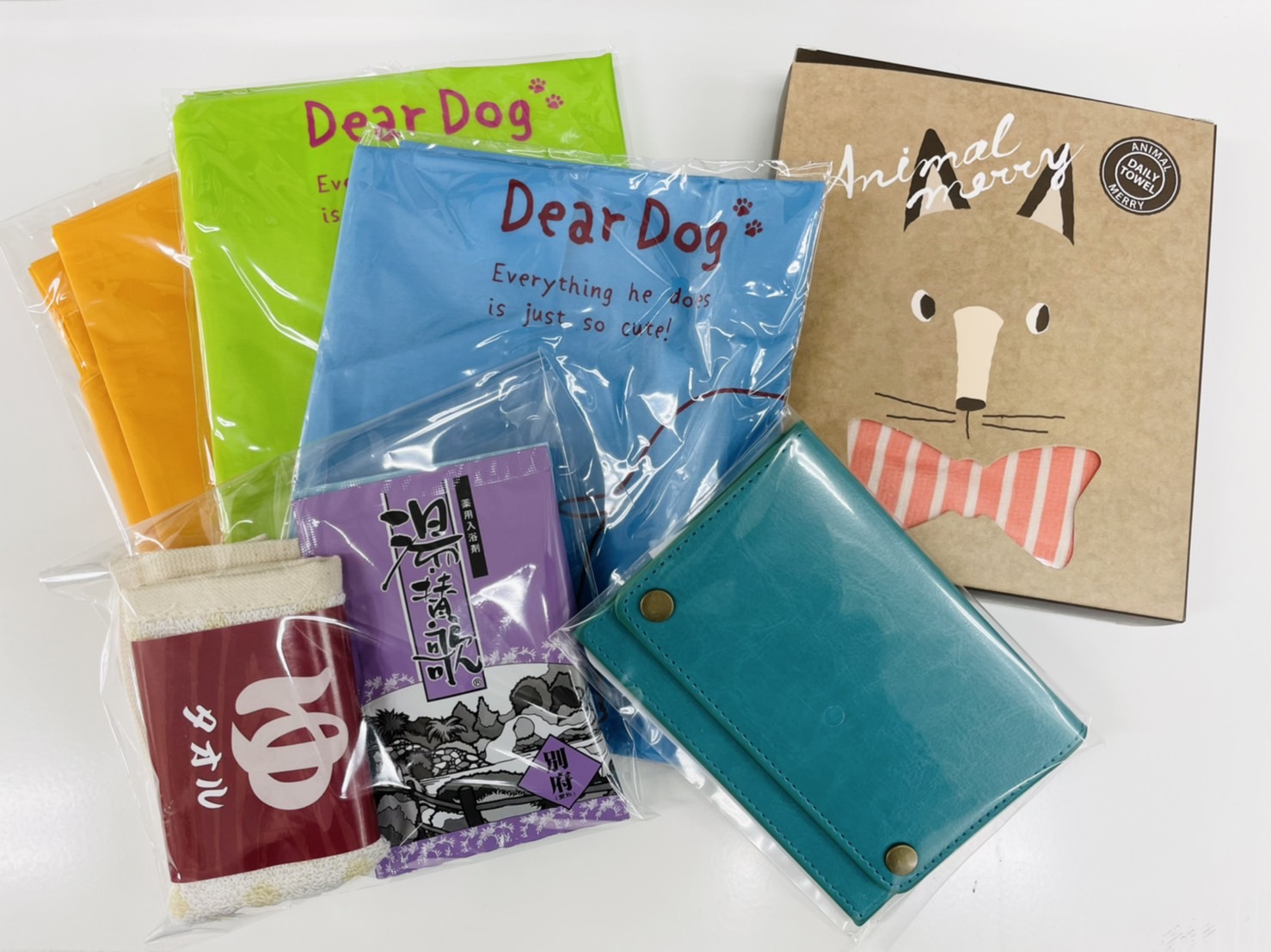 定番のエコバックはもちろん、かわいいタオルや小物ケース、時には温泉セットまで!