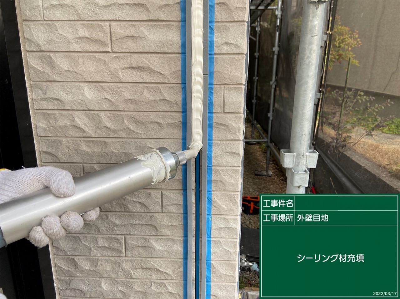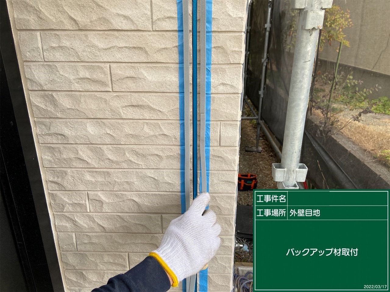 バックアップ材を取付け、その中にシーリングを注入します。