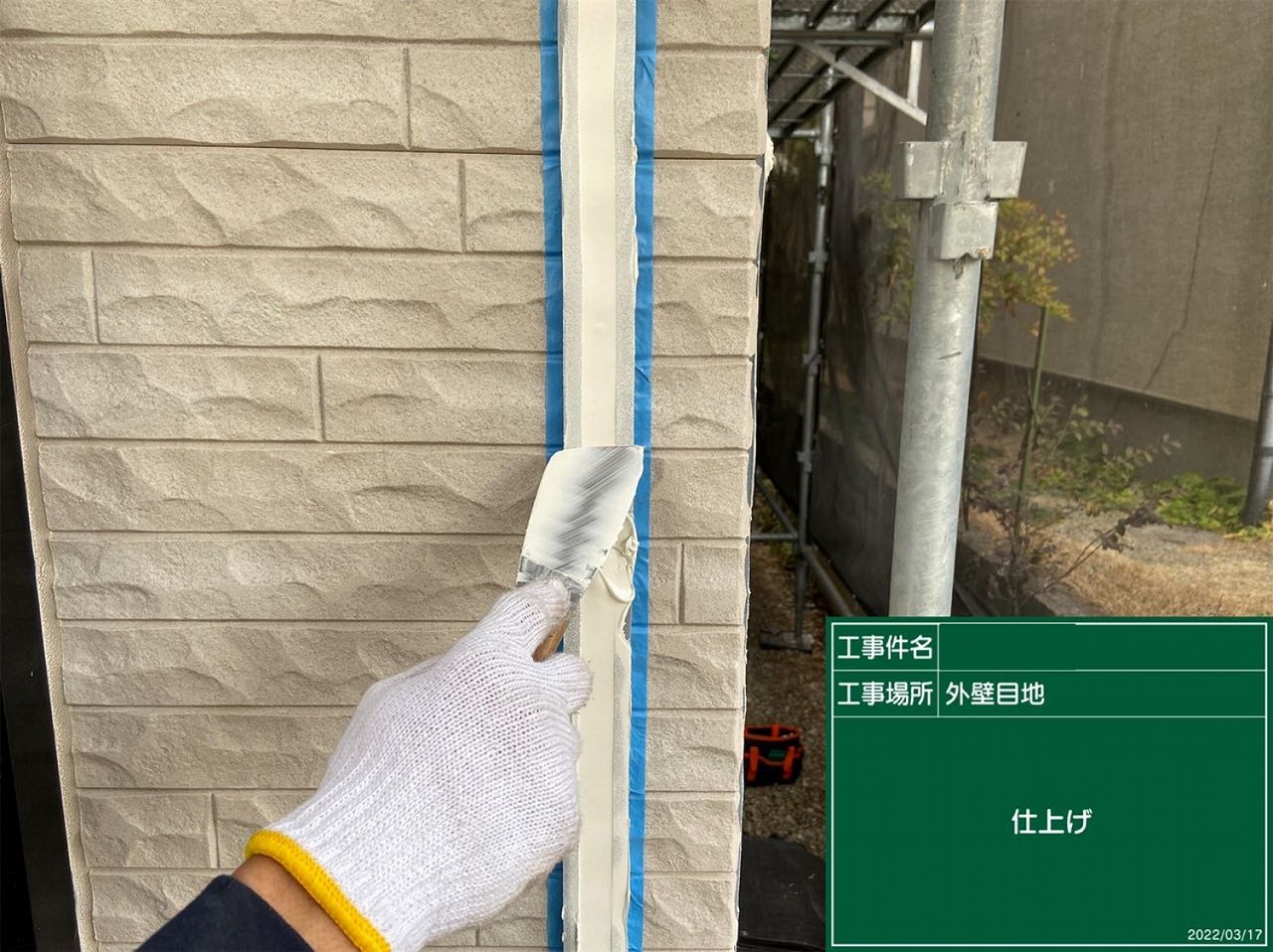 分厚くしたので通常は1日で乾燥しますが、ブリッジ工法では約1週間ほど乾燥時間がかかります。でもそうすることで丈夫な目地が出来、お家を守ることができます。