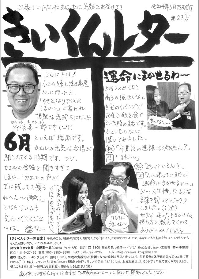 会長が毎月手書きでお送りしているきいくんレターが今月も発行しました📰
