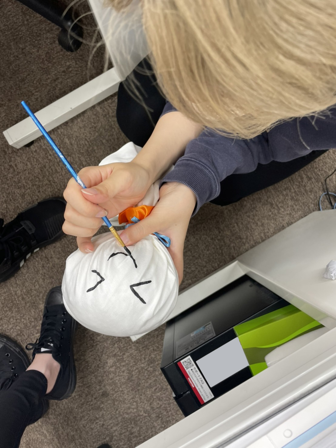 今回は、てるてる坊主のお顔を描いています↓
