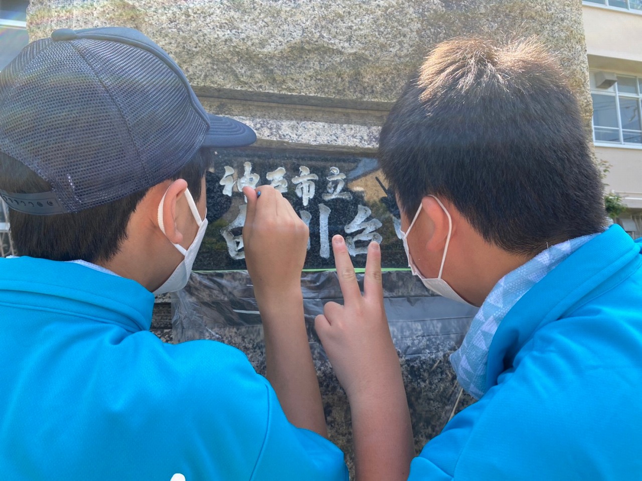 そして時間に余裕があったので学校名・校訓を塗ることに。
