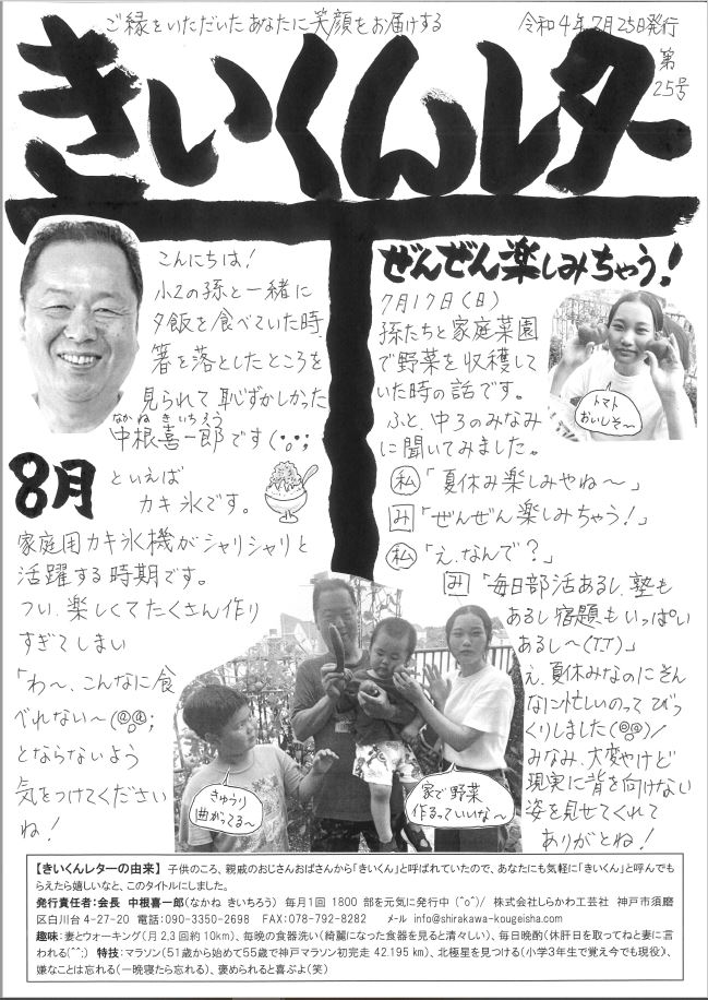 今月も会長のアツいメッセージがこもったきいくんレターが発行しています!