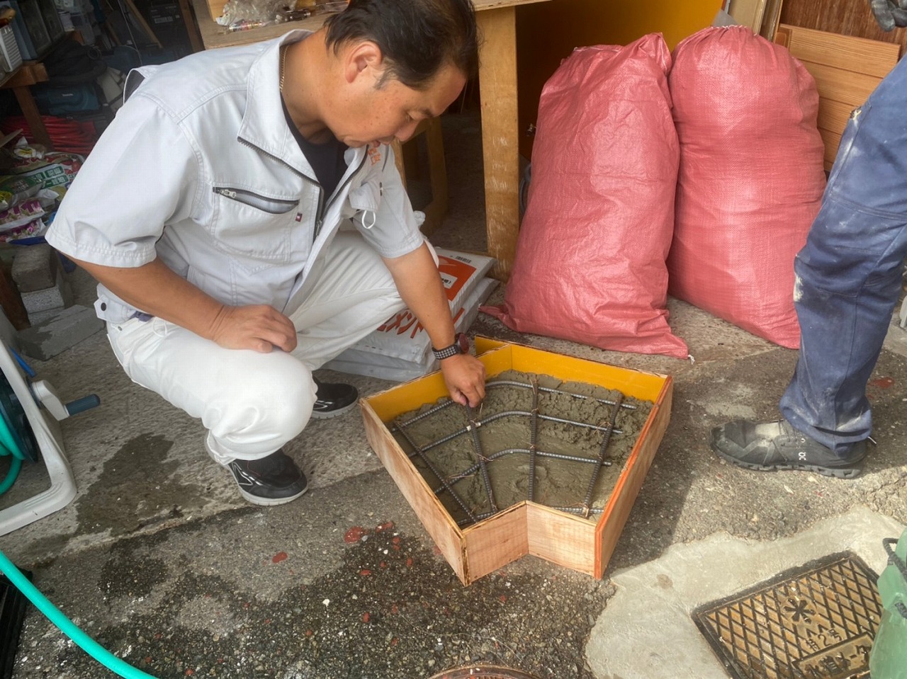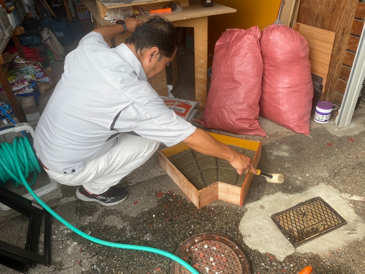 溝蓋の大きさに枠組みを作り!