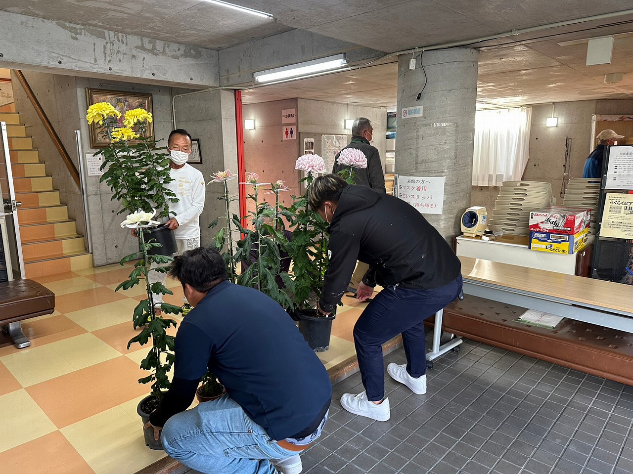 地域イベントで、東白川台にお住いの方が育てた菊花たちを会場まで運んだり、
