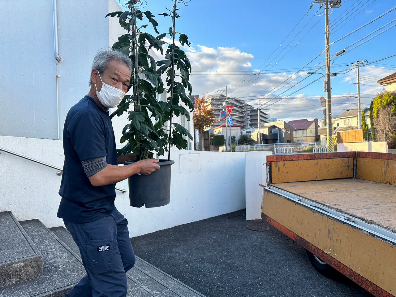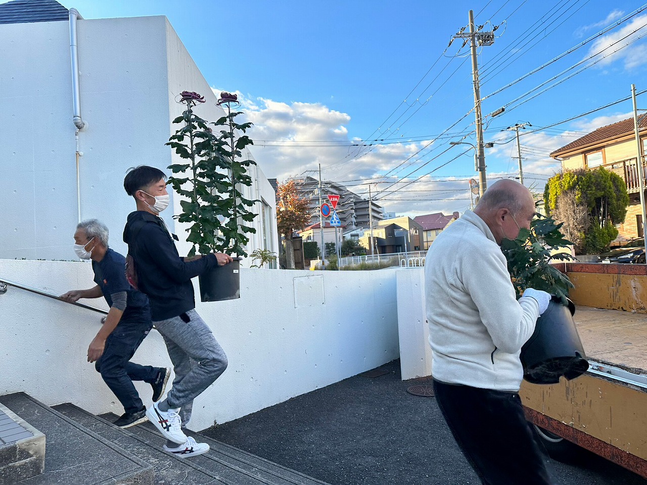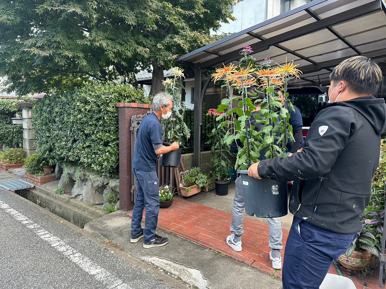 10件ほどお家を回り、菊花たちを運搬しました♪