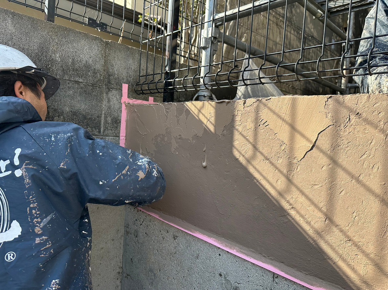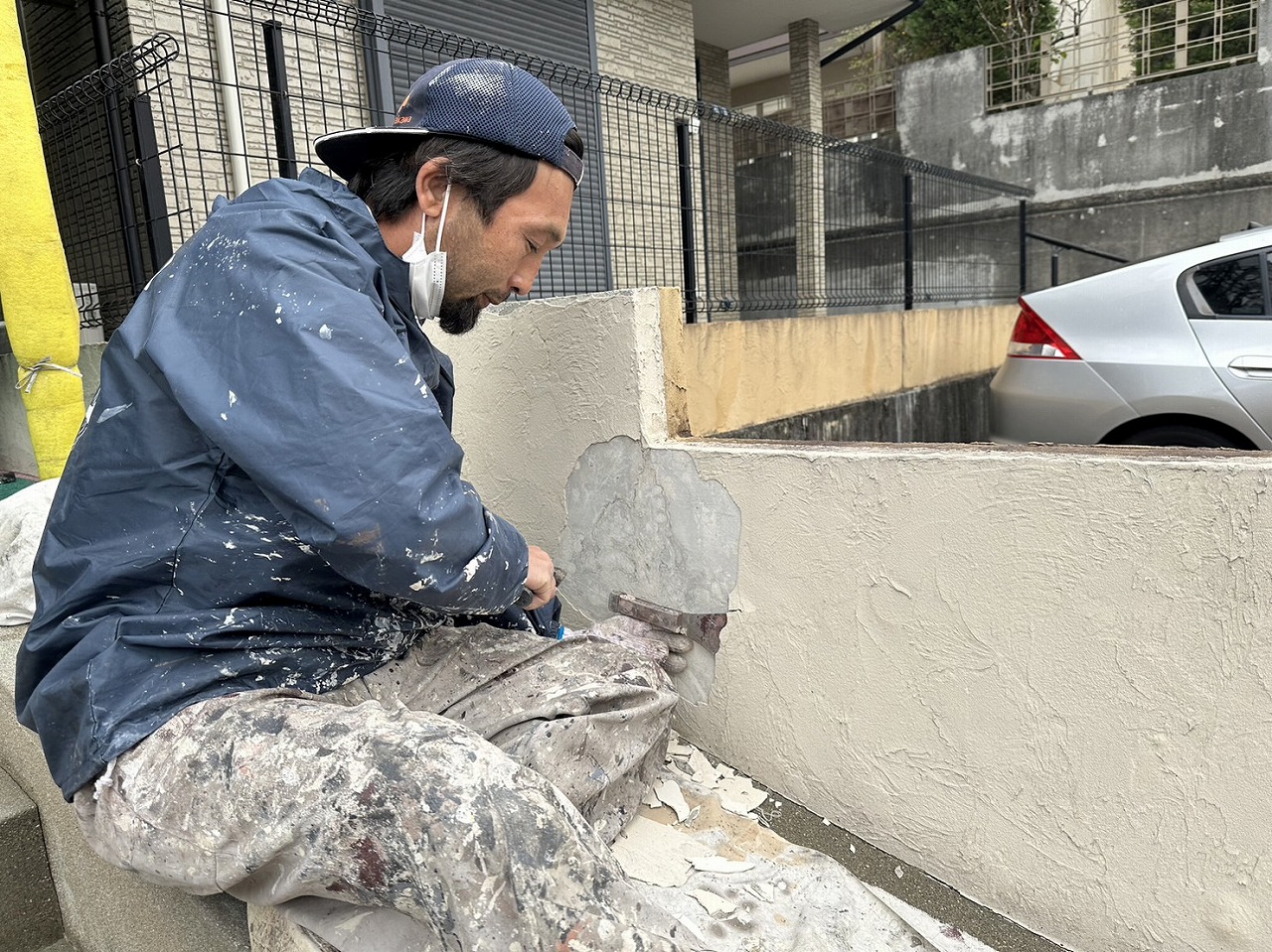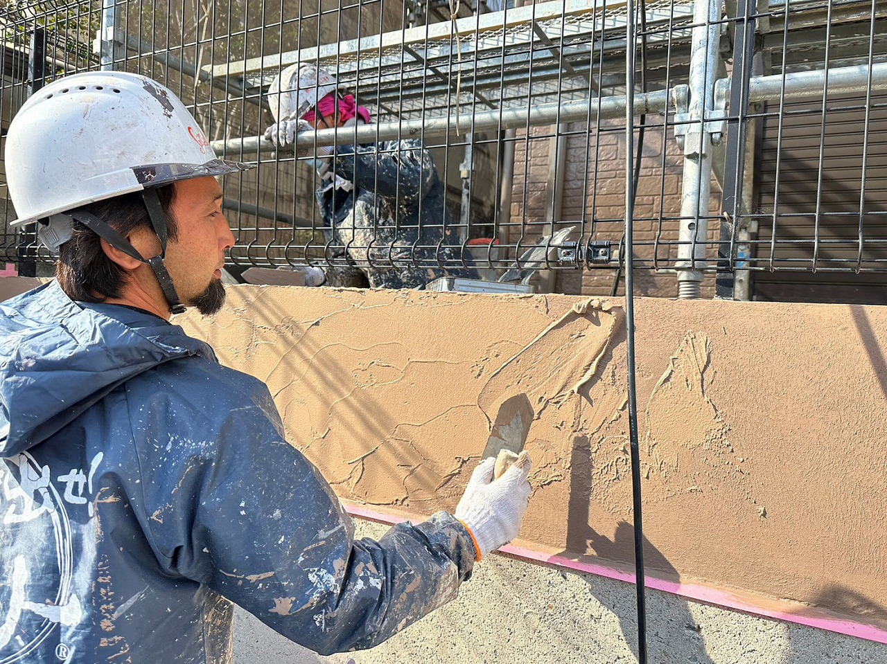 刷毛で塗ることはしょっちゅうしていますが、左官仕上げをすることはなかなかありません。