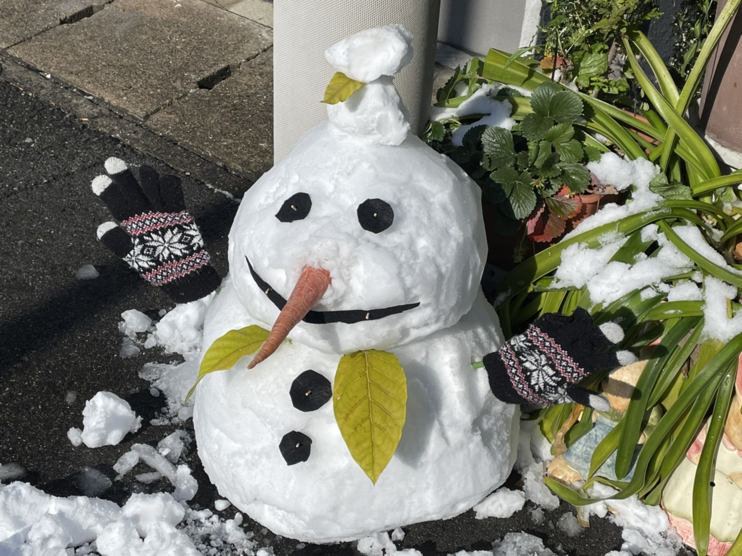 かわいい雪だるまを作って、孫たちと一緒に雪合戦もしたそうです!