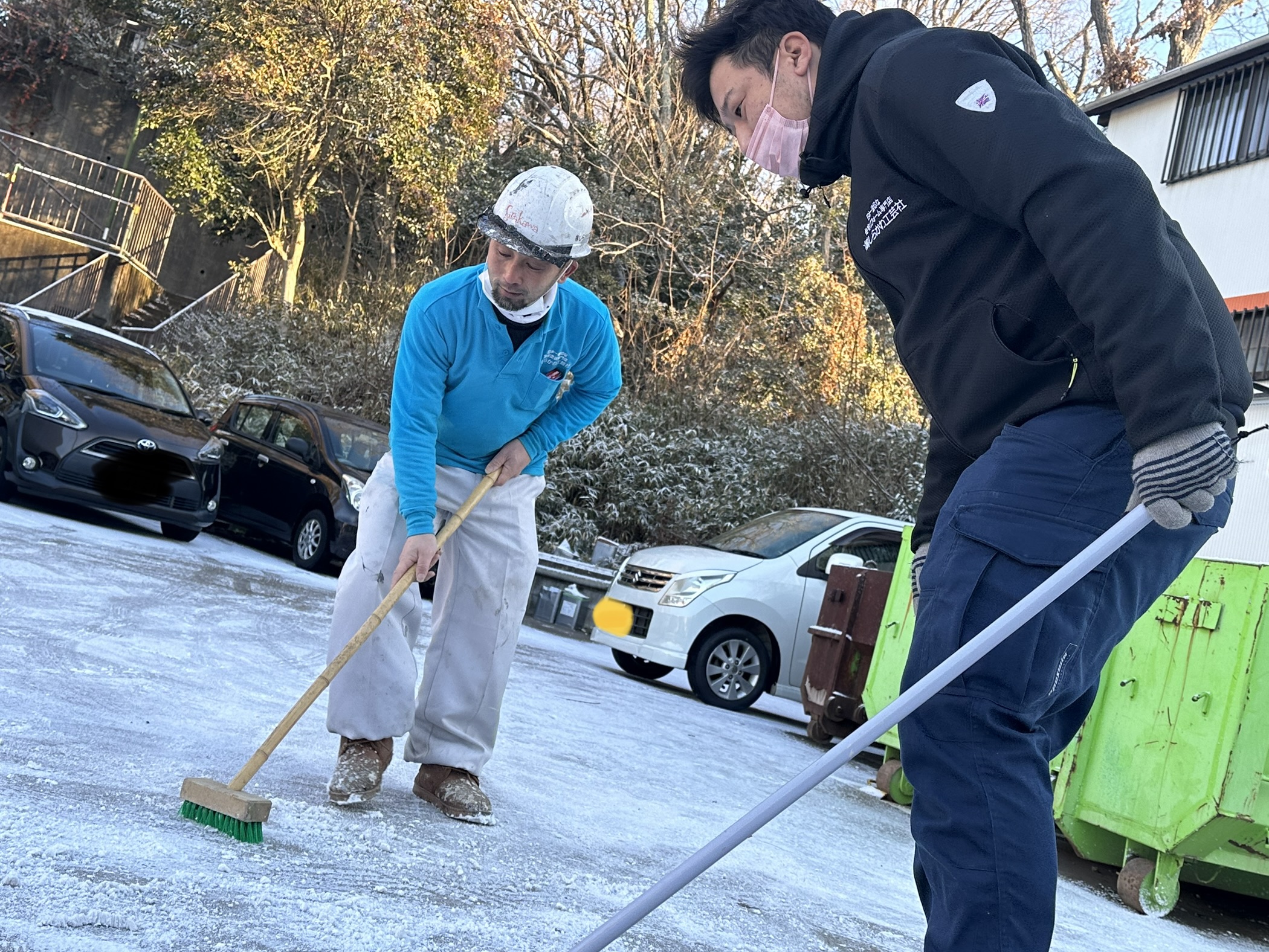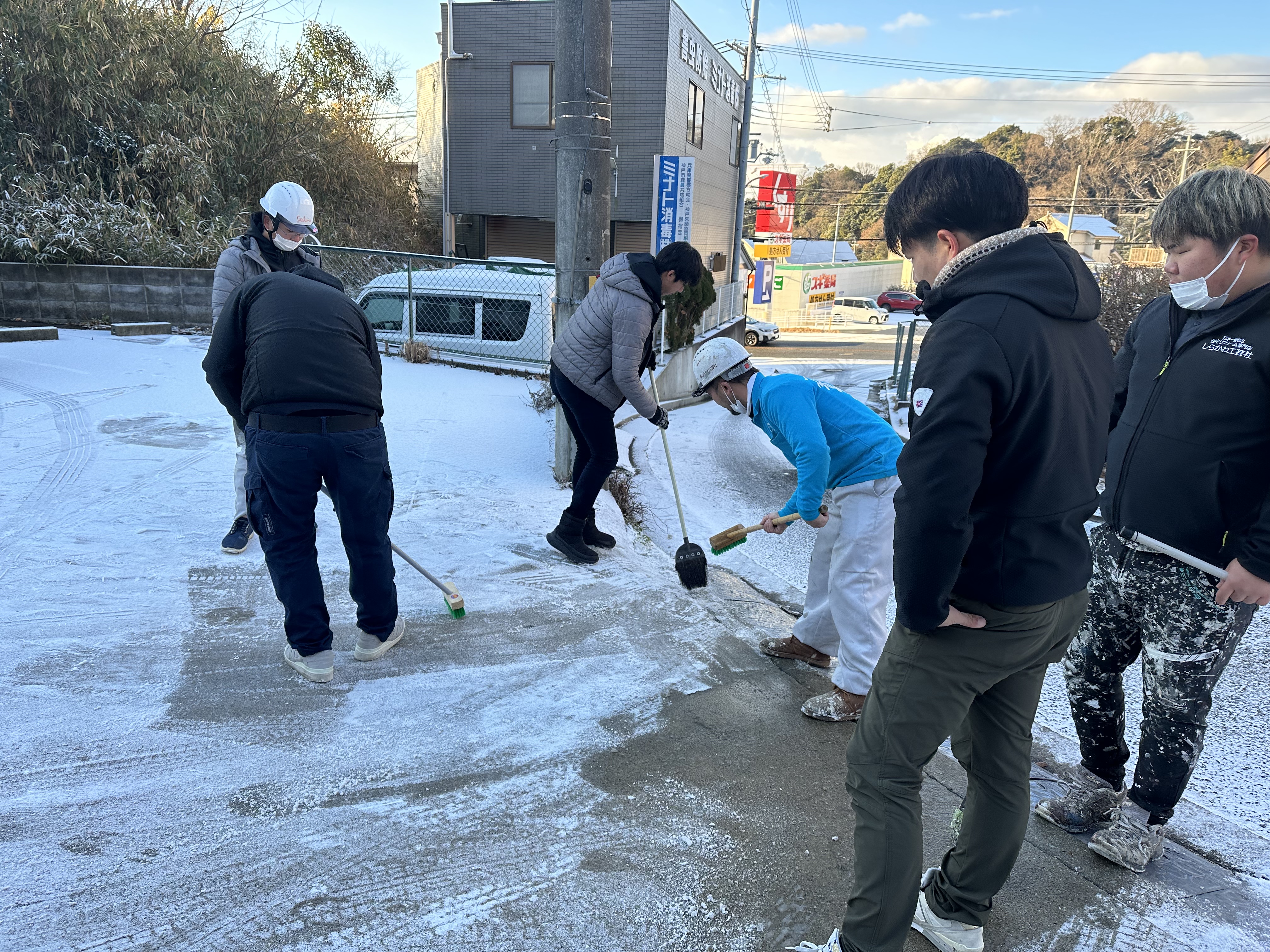 2023/01/28 「しらかわ職人朝から大忙し!(雪かき)」 日常 こんにちは! 昨日の夜からなのか?今日の朝なのかはわかりませんが、 またまた雪が降ったそう!倉庫に着くと地面が真っ白で凍ってるやん!? 帰ろうとしても車が滑って倉庫から出れない職人さん! みんな帰るために、雪かきを始めました! ↑安達さんがベゴニアを描いてくれました笑♪ ワチャワチャ楽しみながら、無事雪かきも終わり無事に帰宅することが出来ました!