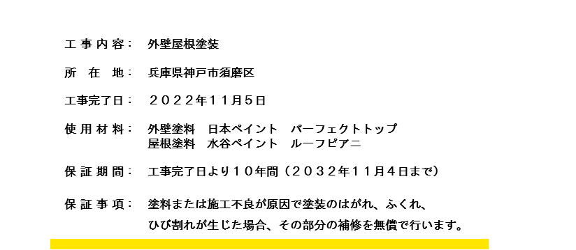 その塗装工事での保証は10年、長くて15年保証をしています。
