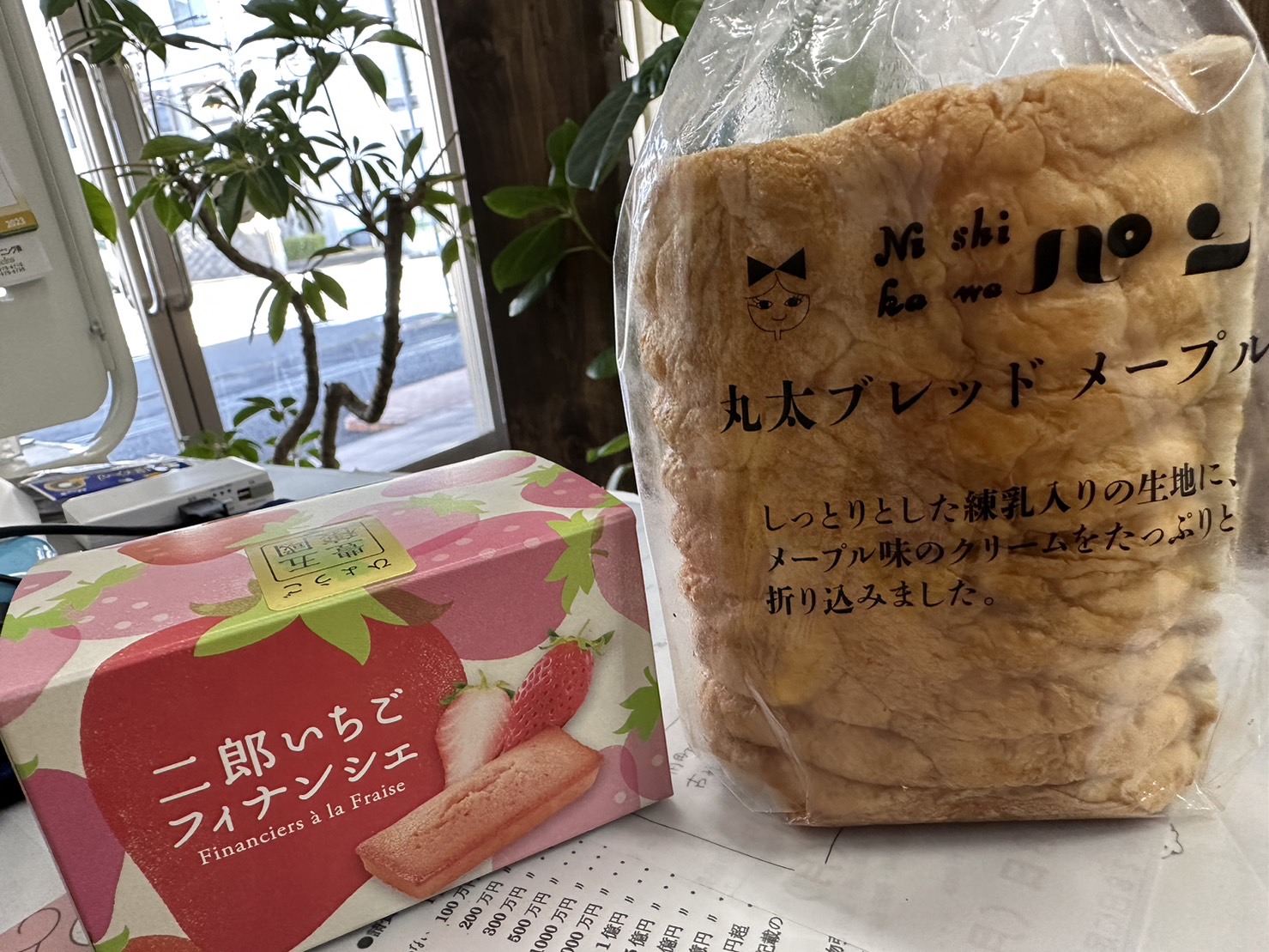 下本さんからはこの季節にもってこいの苺のフィナンシェ、品治さんからは美味しそうなパン!