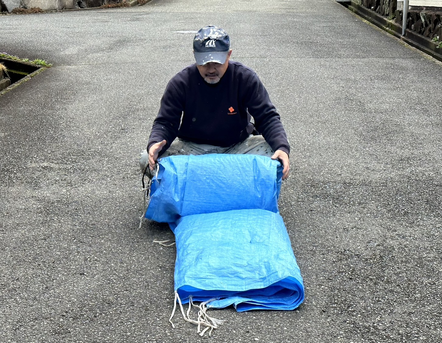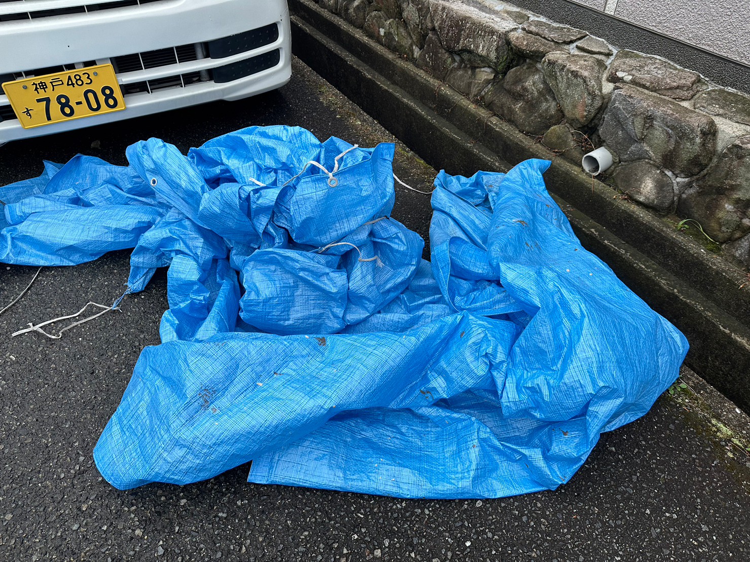 と言われたので神田さんと一緒にブルーシートを畳みました!