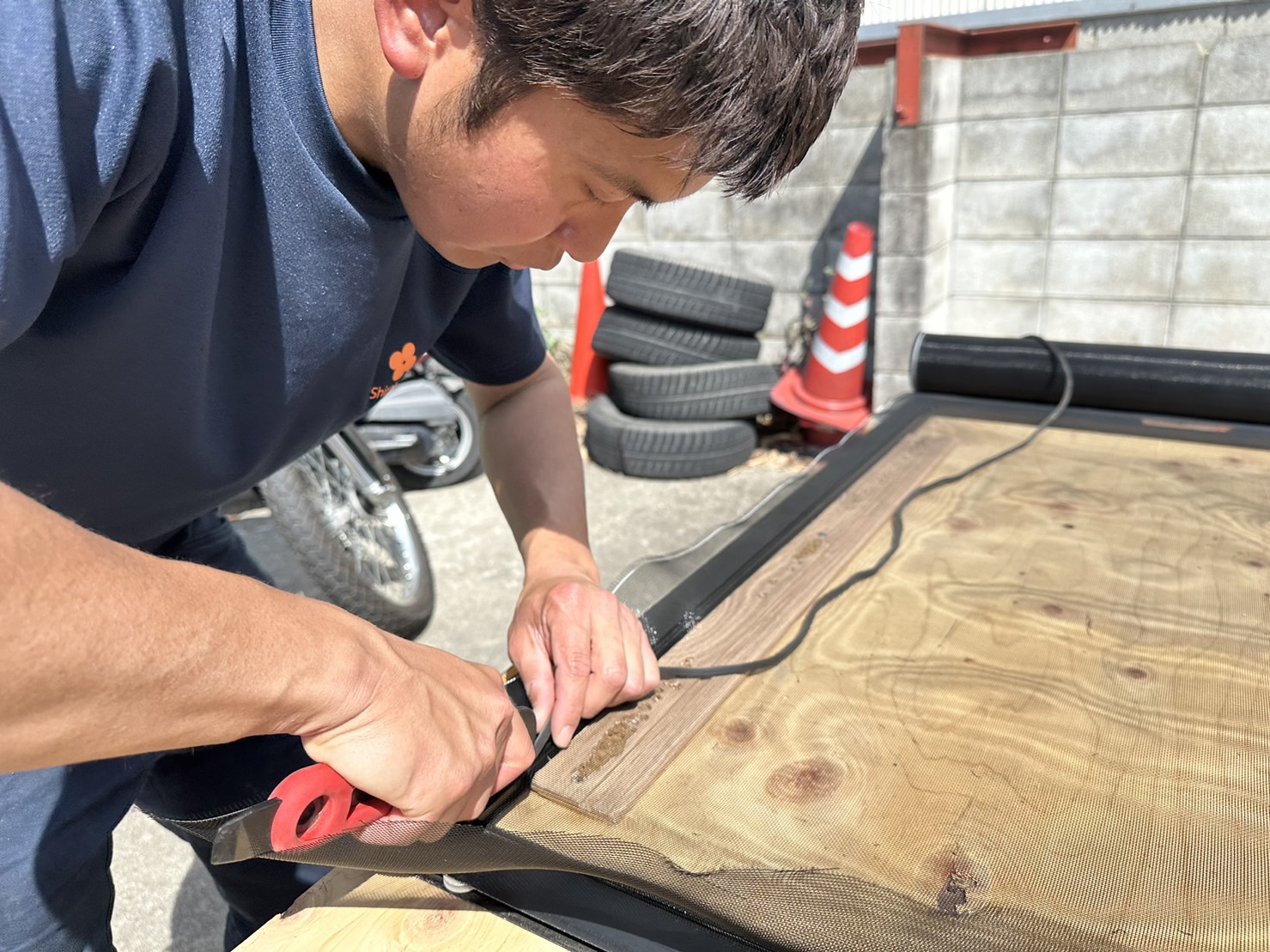 「せっかく注文くれているからには、網を真っ直ぐに張ってピンっと張ったきれいな網戸に仕上げた!」