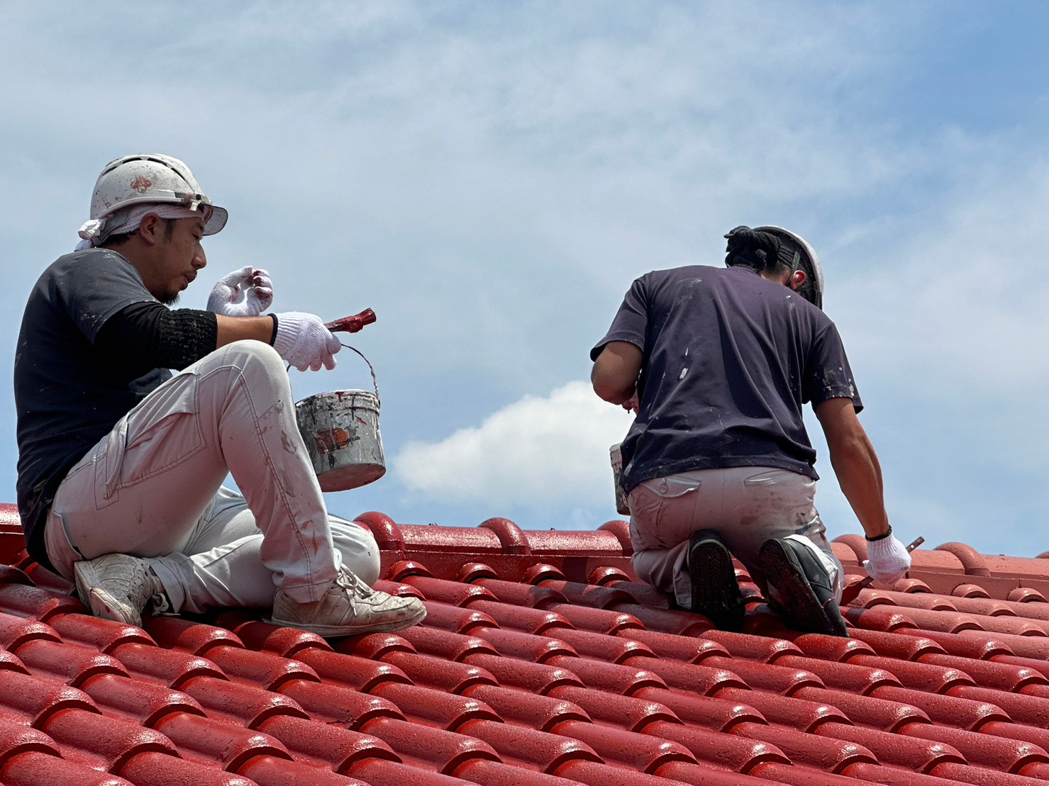 ちょうど休憩終わりで、屋根塗装の準備をしていました(^^)/