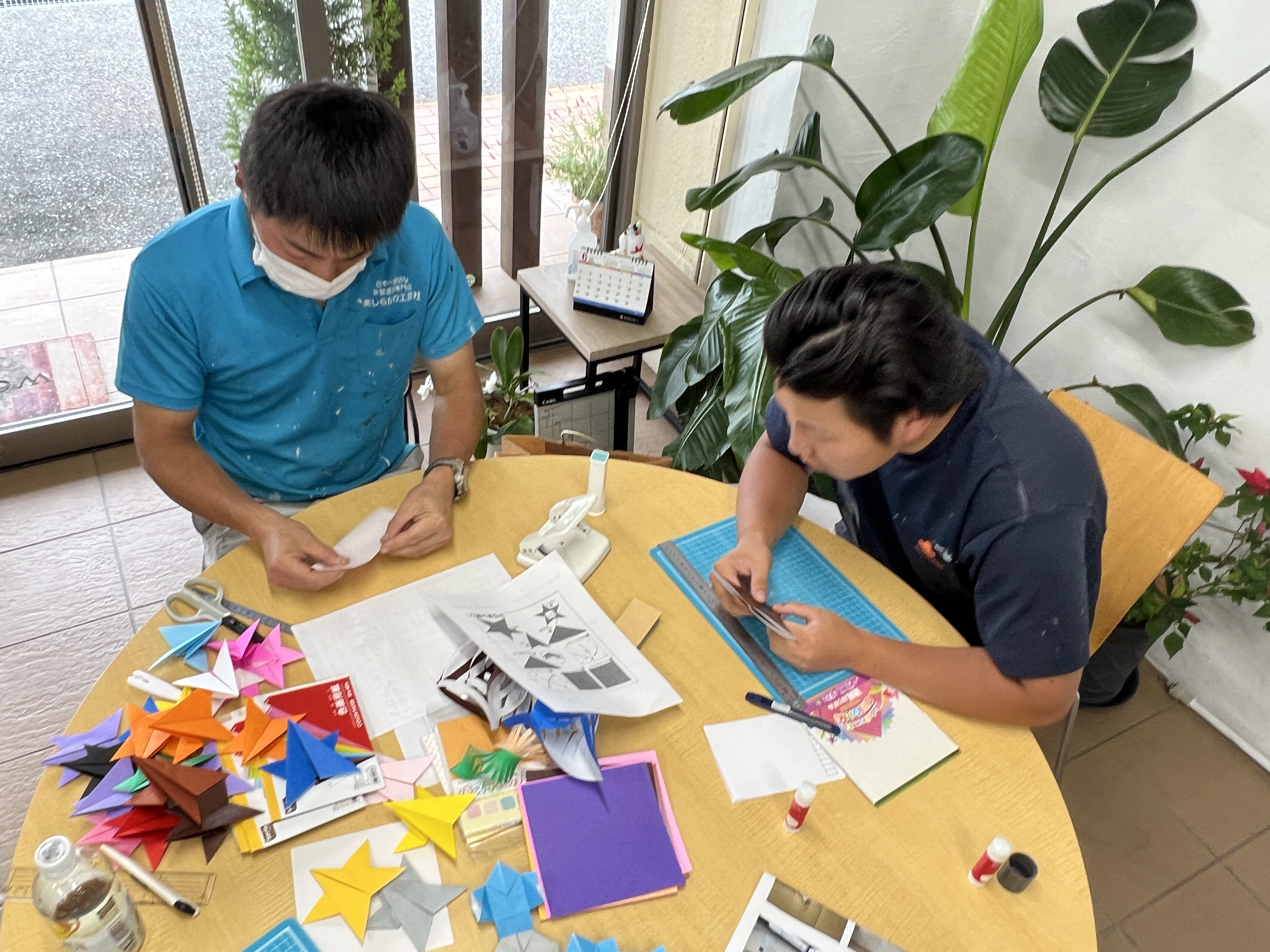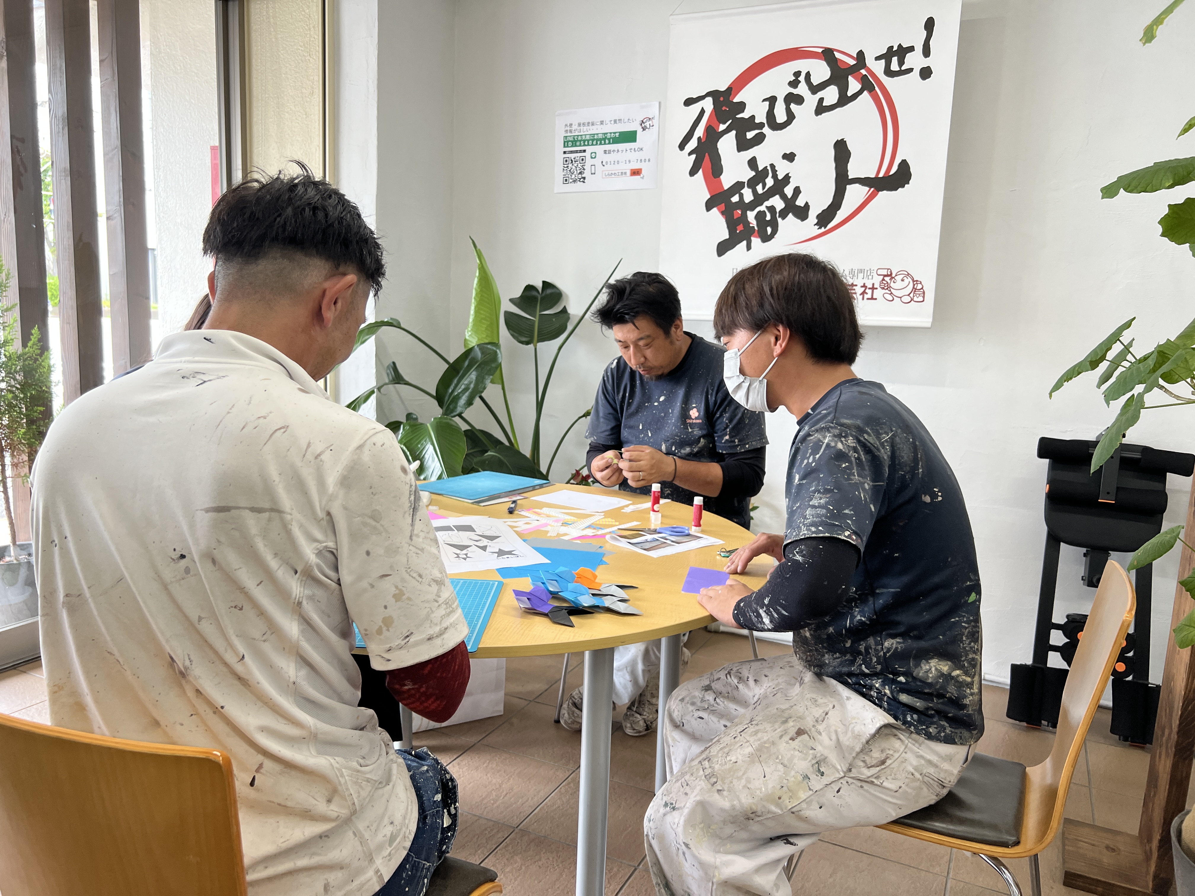 普段は、刷毛やローラーで豪快に塗装している職人さんですが、今回は折り紙!