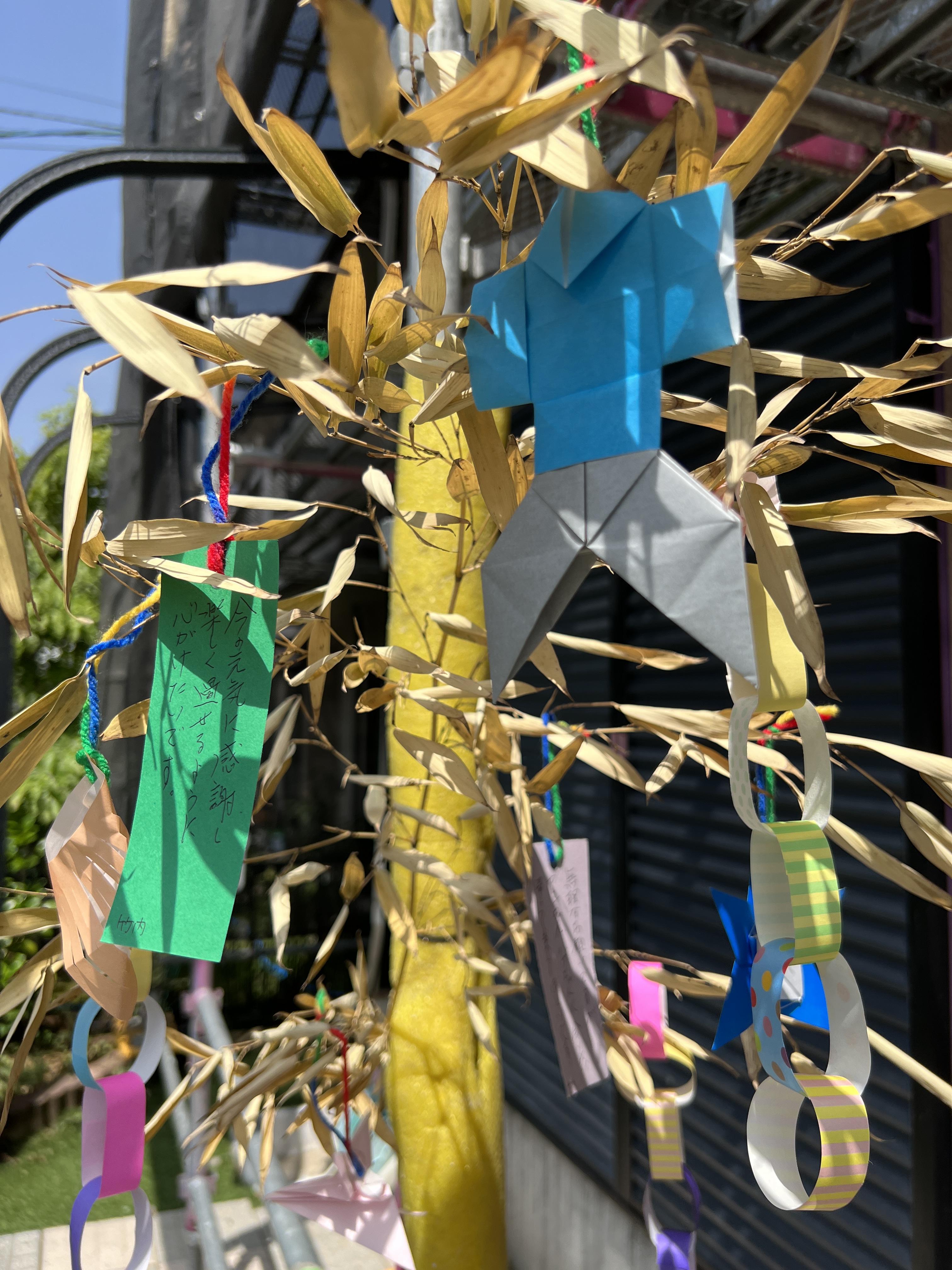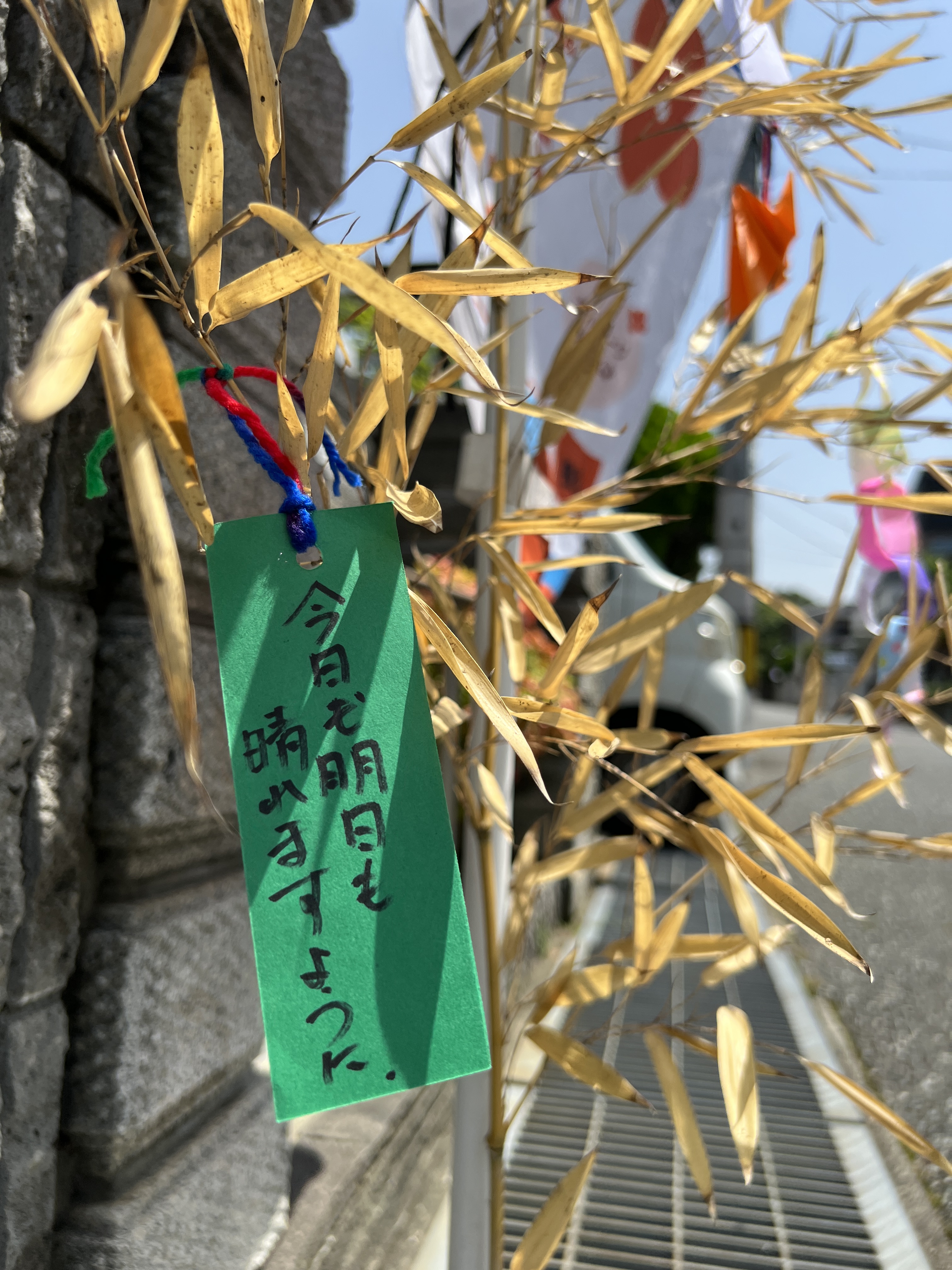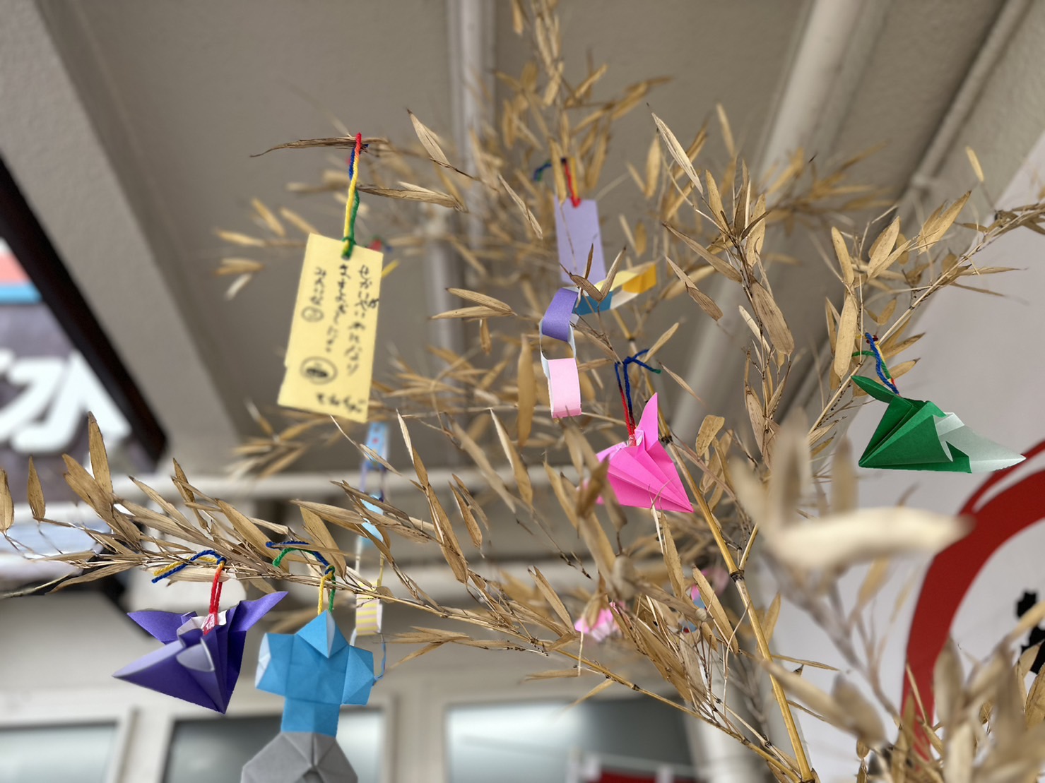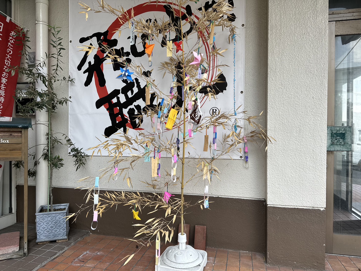 事務所の前には、大きな笹の葉を飾っています!