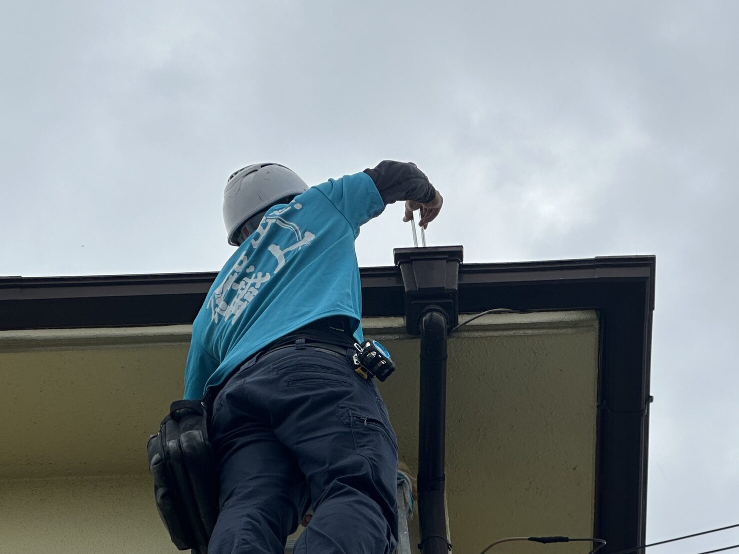 どんな作業するのかなぁ・・・と思っていると「雨樋の掃除をしに行くから」とのこと!