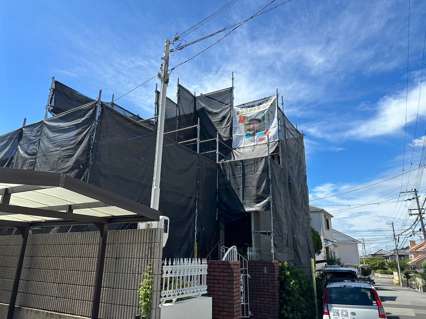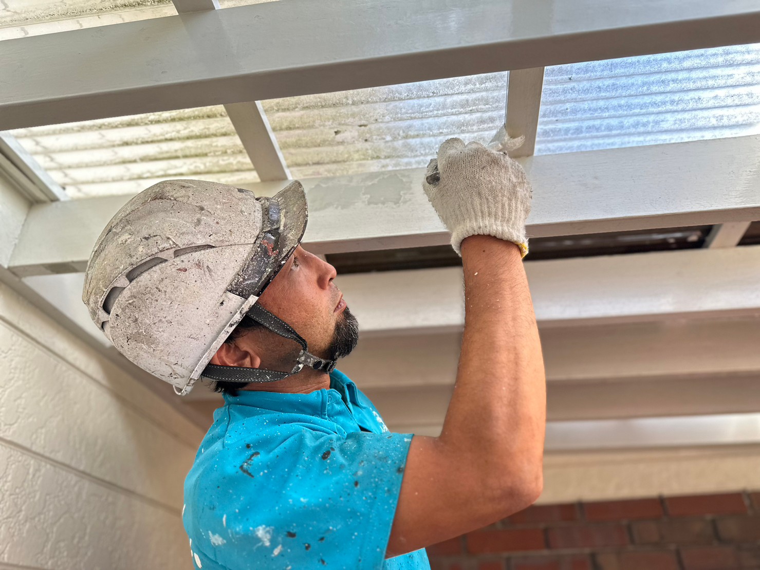ここの現場は、外壁屋根塗装はせずに雨といや破風板など付帯物のみの塗装!