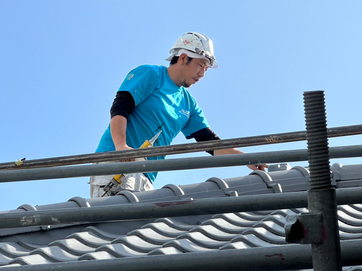 裕太さんは屋根の上で補修中!