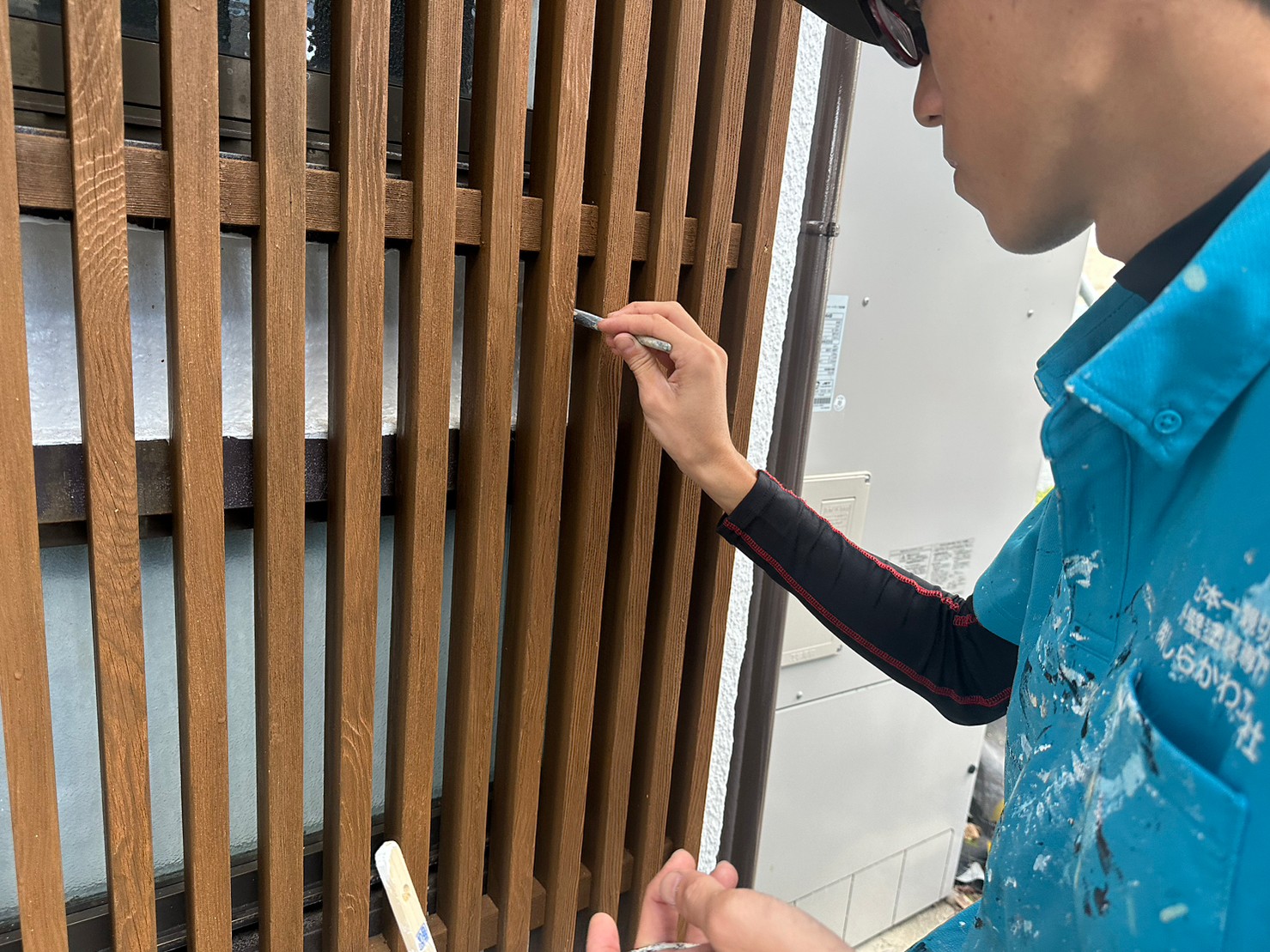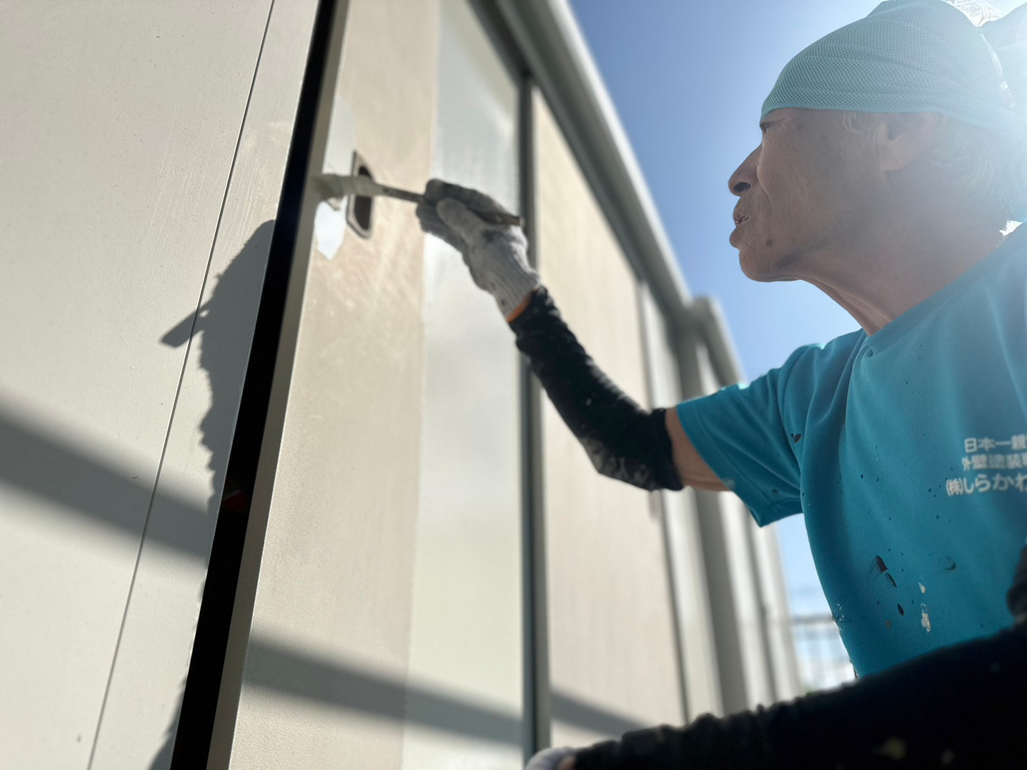 木部を汚さないように外壁を塗っていました。