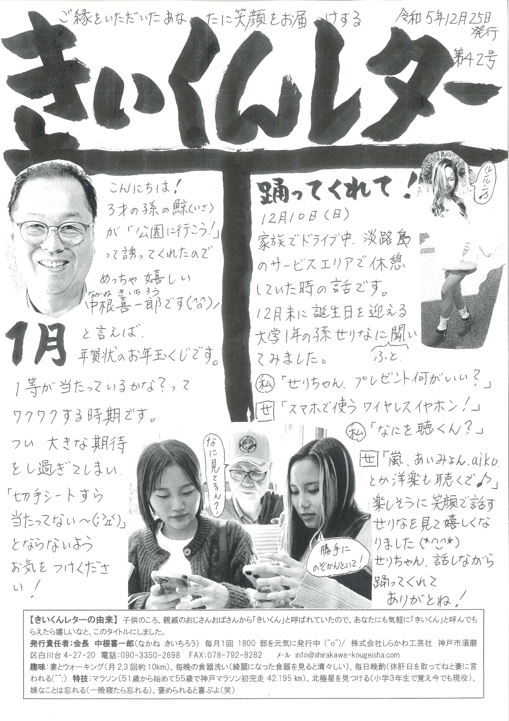 今月1月の会長の中根手書きの