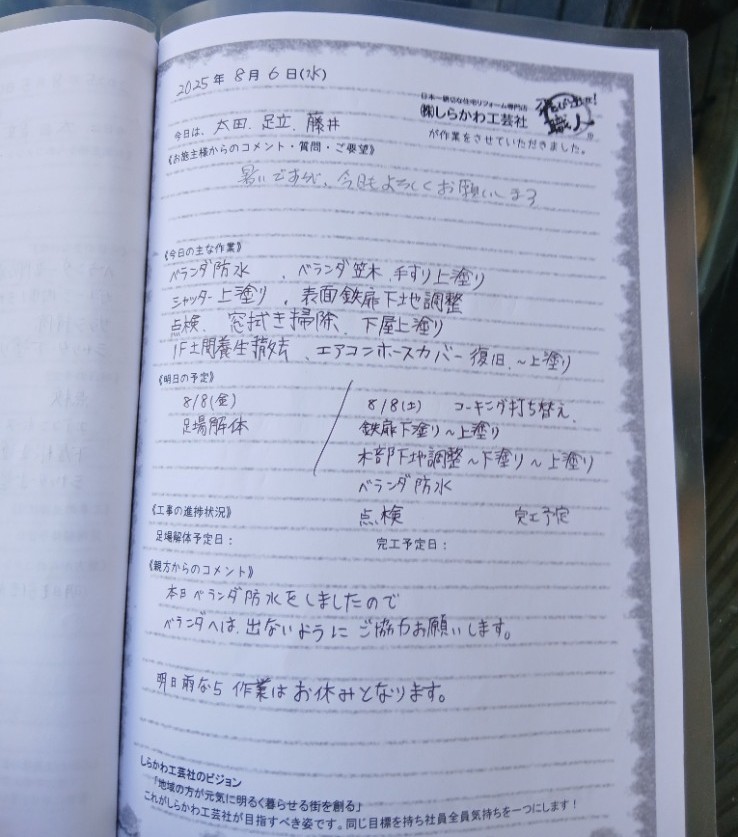 あるお客様からは「工事日報がまるで交換日記みたいで、読むのも書くのも楽しかったです」と言っていただきました。