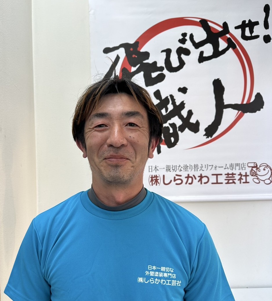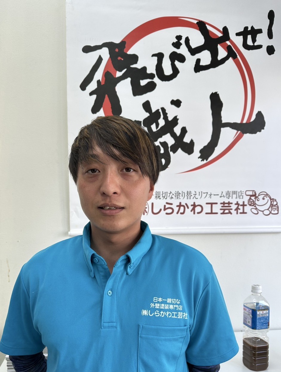 - 藤井 允(まこちゃん):1級塗装技能士。腕には自信があります。誠心誠意、お客様のことを思って心をこめて施工します。