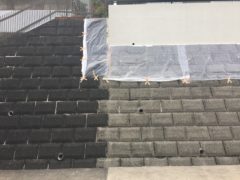 皆さん こんにちは! しらかわ工芸社の 中根義将(よしまさ)です。 先日、塀塗装の現場に行ってきました! 最初は黒ずんでいた間知石も、しっかり高圧洗浄しました。 洗浄後の状態がこちらです…