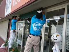 こんにちは!しらかわ工芸社の 中根義将(よしまさ)です。 今日は垂水店で、日除けオーニングを取付けてきましたよ(^^) 垂水店は、前面がガラス張りのため、西日が差すととっても暑く、 冷房もきかない状態…