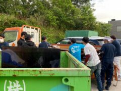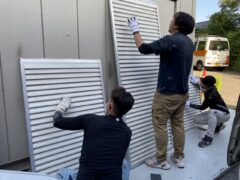 こんにちは! 昼寝したのにまだまだ眠たい広報の桃井です(´Д⊂ヽ 現場から帰って来た職人さん! 何やら騒がしい~♪ みんなで協力して雨戸をケレン中 「早く帰るためにも! みんなでやれば早く終わる(^-…