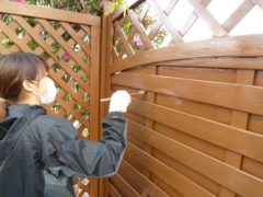 こんにちは!現場サポートの福地です。 先日、西神店の浦川代表親方と一緒に、 ラティス(木製のフェンス)の塗装をしにいきました! まずはこの道具を使って、ケレンという作業をしていきます。 コケなどの汚れ…